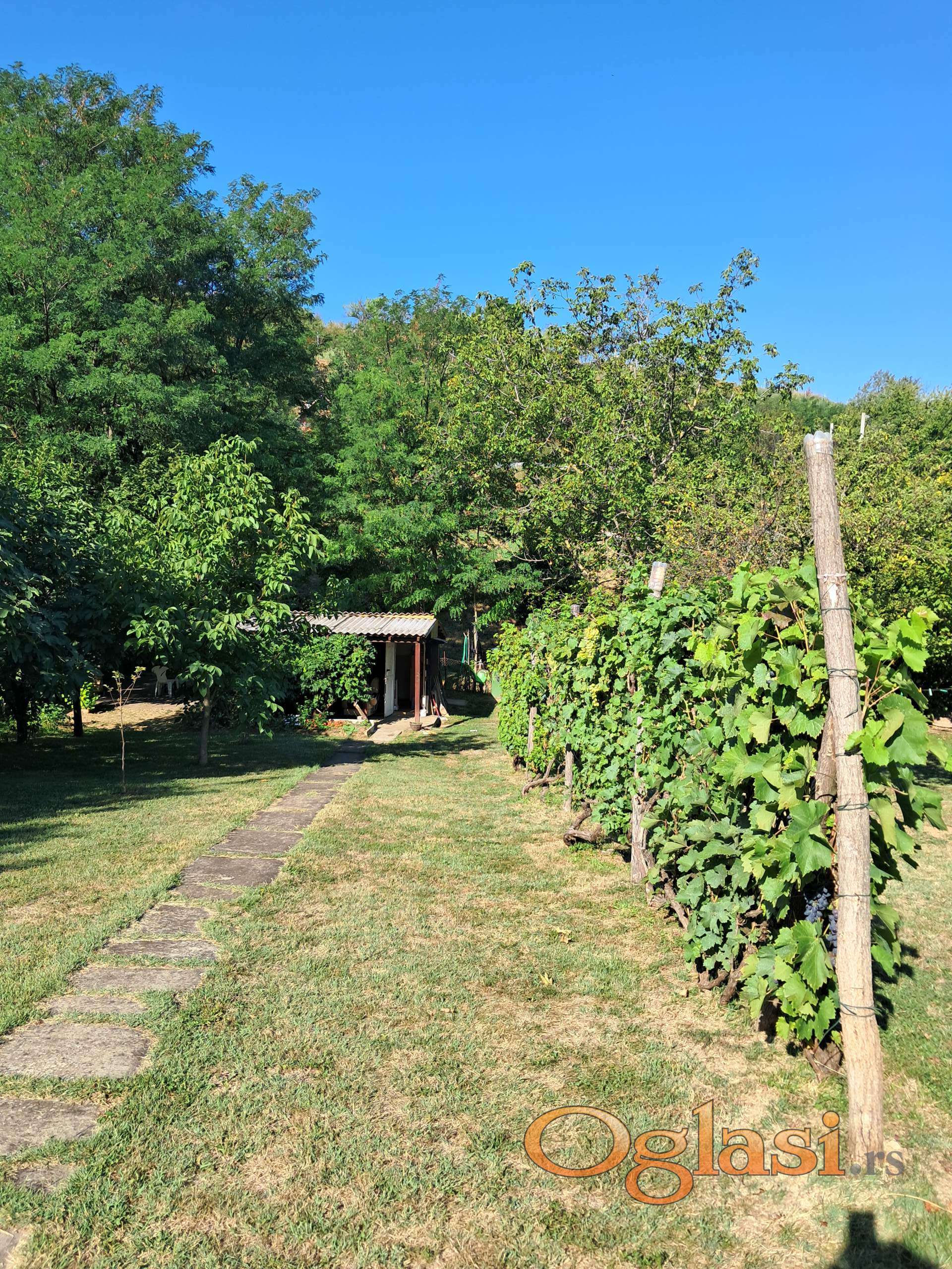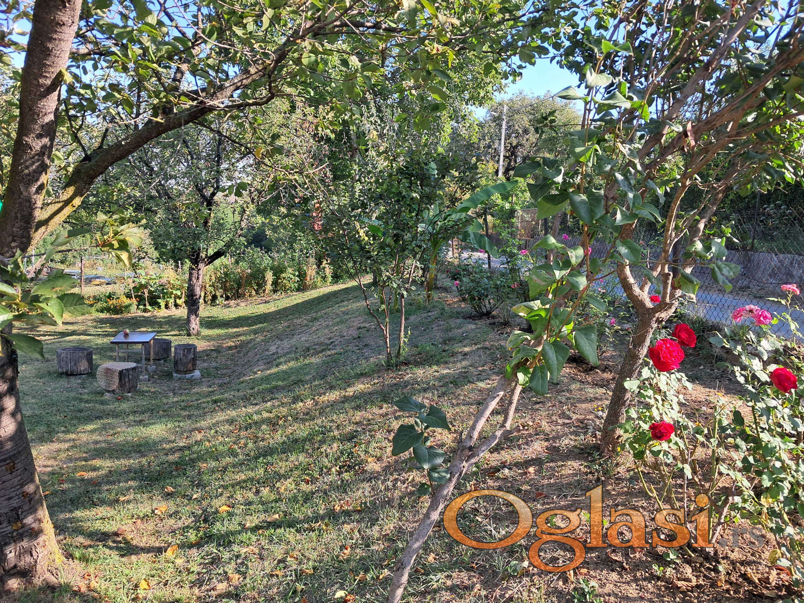Plac je relativno ravan, pravilnog pravougaonog oblika, potpuno ograđen, ima metalnu kapiju. Odlično je održavan. Na placu ima zasada, sve u rodu: 5 višanja, 1 trešnja, 2 smokve, 4 jabuke, 2 dunje, dud, 2 lešnika, 3 oraha, bagremi, ljeska, vinograd desetak čokoti, aronija, maline, bašta, kao i dvadesetak ruža i mnogo drugog cveća.