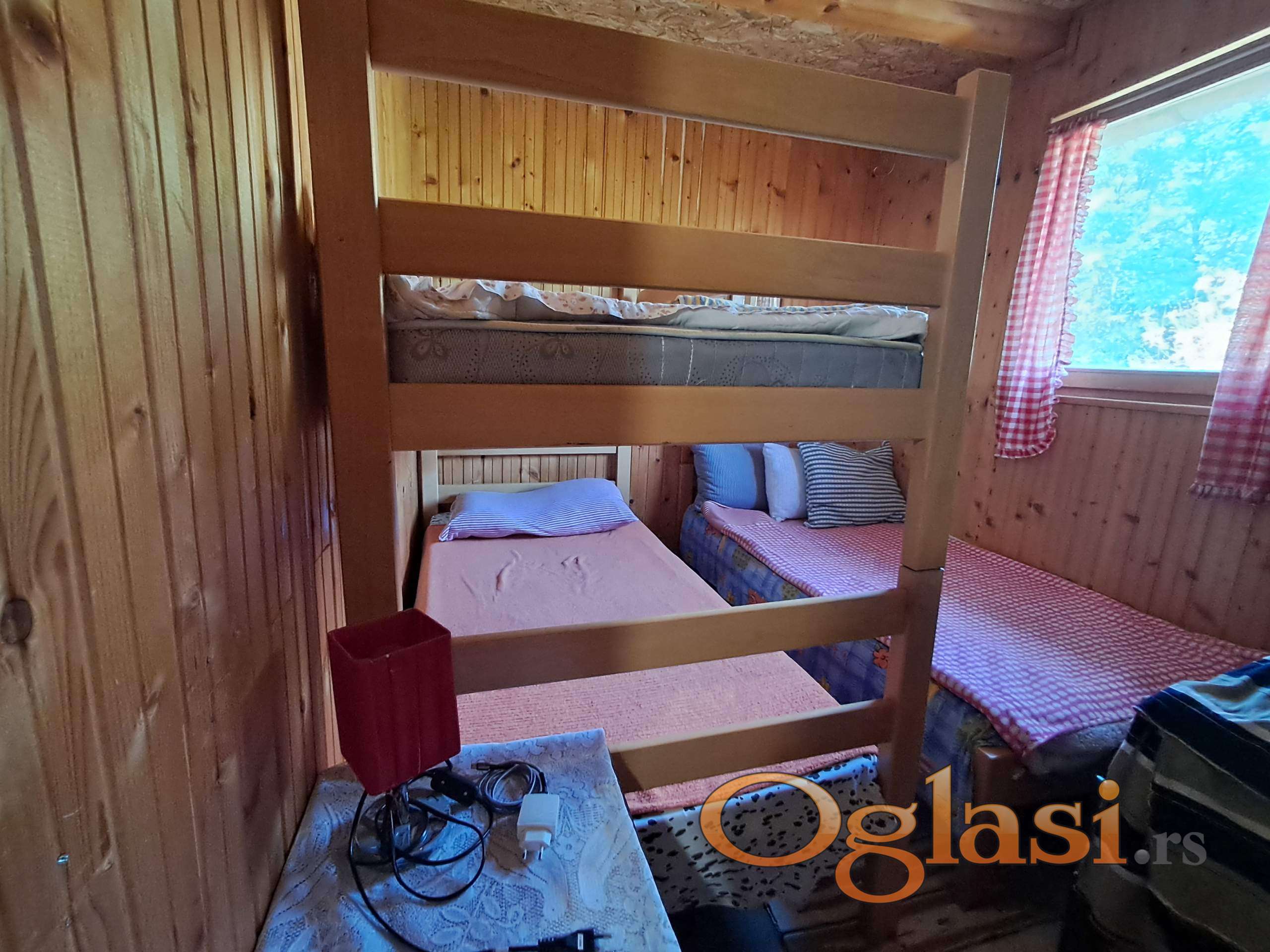 Brvnara je od poluoblica, odlično održavana, sa dve spavaće sobe i kupatilom. Osim brvnare, na placu su i dva drvena pomoćna objekta (jedna je letnja kuhinja, druga šupa). Objekti imaju struju monofaznu, naseljsku vodu i mogućnost priključenja na internet i gas (koji prolazi kroz ulicu). Na placu je i lepa baštenska česma, kao i višenamenski manji plato od behatona.