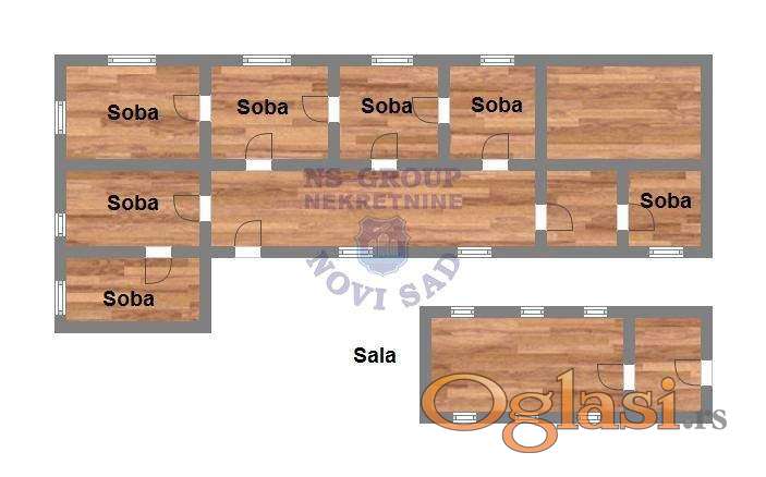 Ukoliko ste u potrazi za jedinstvenom nekretninom od koje možete napraviti ustanovu, hotel, starački dom i ostalo onda bi ovakva investicija definitivno bila za vas. U pitanju je nekretnina koja se nalazi na odličnoj lokaciji u Kisaču i na samo 15tak kilometara od Novog Sada. U jednom delu kuće se nalazi 6 prostorija sa prostranim hodnikom koji vodi do svake prostorije, u drugom delu jeste velika sala na spratu, dok su u prizemlju dva sanitarna čvora. Ispod većinskog dela kuće se nalazi i suterenski prostor koji se takođe može iskoristiti. U sklopu kuće su i dva lokala ulično orijentisani. Dvorište je funkcionalno i ima dovoljno prostora za dodatne prostorije po želji kupca. Plac je površine 967m2. Ukoliko ste zainteresovani pozovite našeg agenta prodaje!