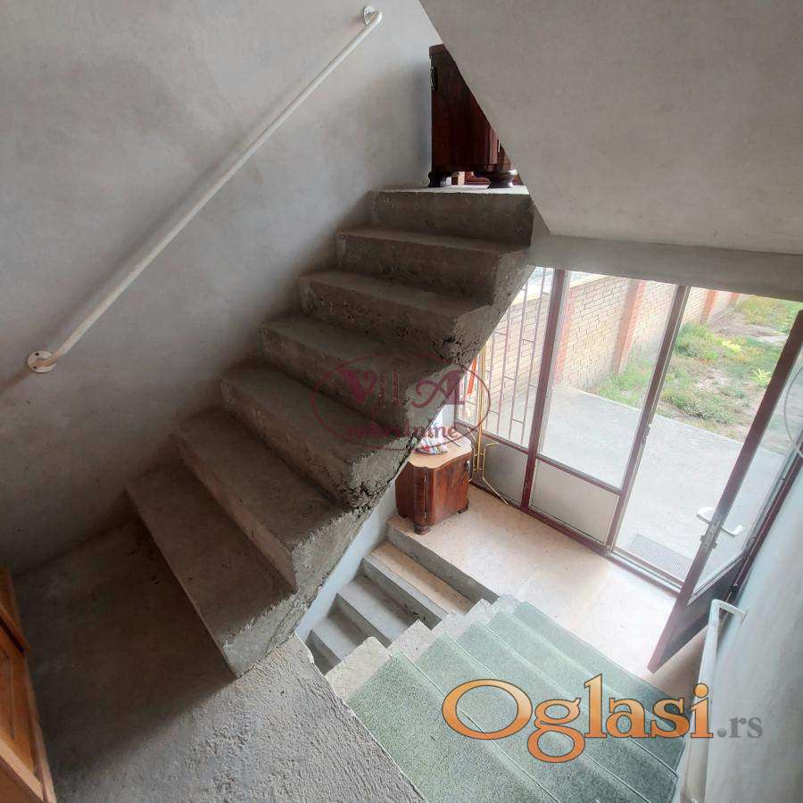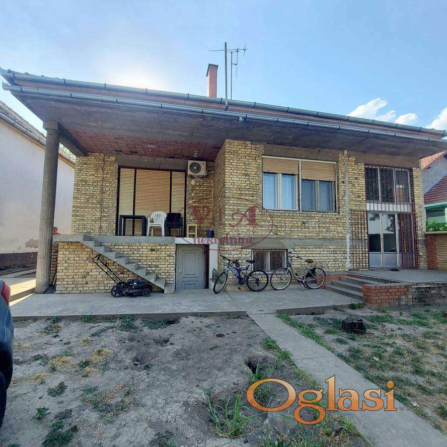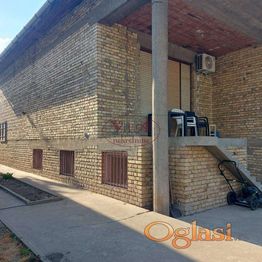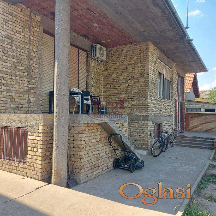 Prodaje se odlična kuća na dobroj lokaciji blizu centra Srbobrana. Kuća je građena u dva nivoa, prizemlje i suteren i sve je uknjiženo, gde ima 335 m2 bruto stambene površine. Kuća u prizemlju ima dve spavaće sobe, veliku dnevnu sobu koju je potrebno završiti- omalterisati, kuhinju sa trpezarijom, kupatilo, ostava i veliko predsoblje. U suterenu se nalaze tri sobe, kuhinja, kupatilo, hodnik. Kuća je pogodna za dve porodice ili za stanovanje i poslovanje. Kući je potrebno izvesti završne radove u smislu fasade i malterisanje dnevne sobe. u dvorištu kuće ima i jedan pomoćni objekat koji služi kao ostava.Kuća je odmah useljiva. Odlična nekretnina po povoljnoj ceni. Više fotografija na našem sajtu. Tel. 065/424 55 77.