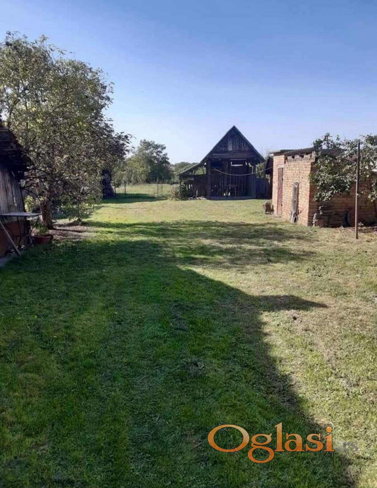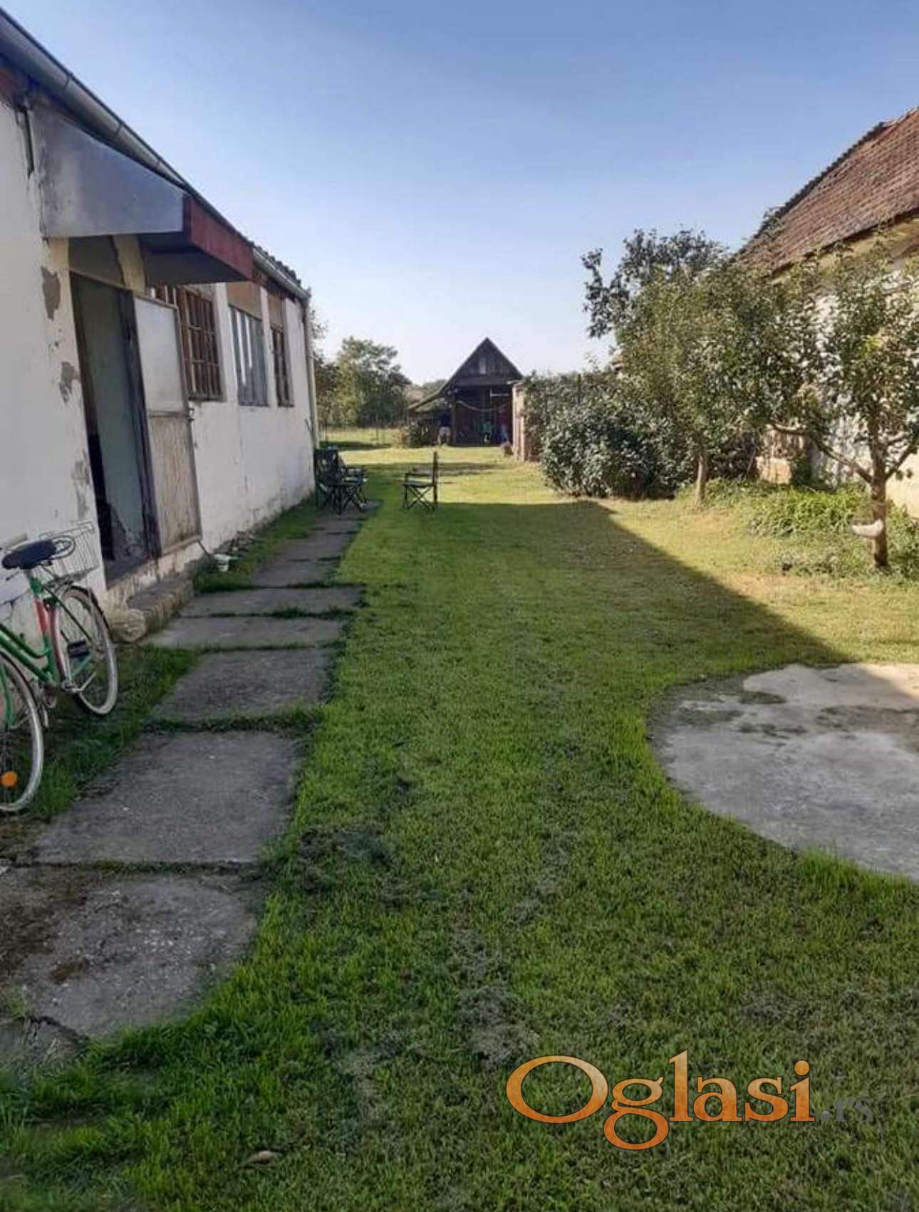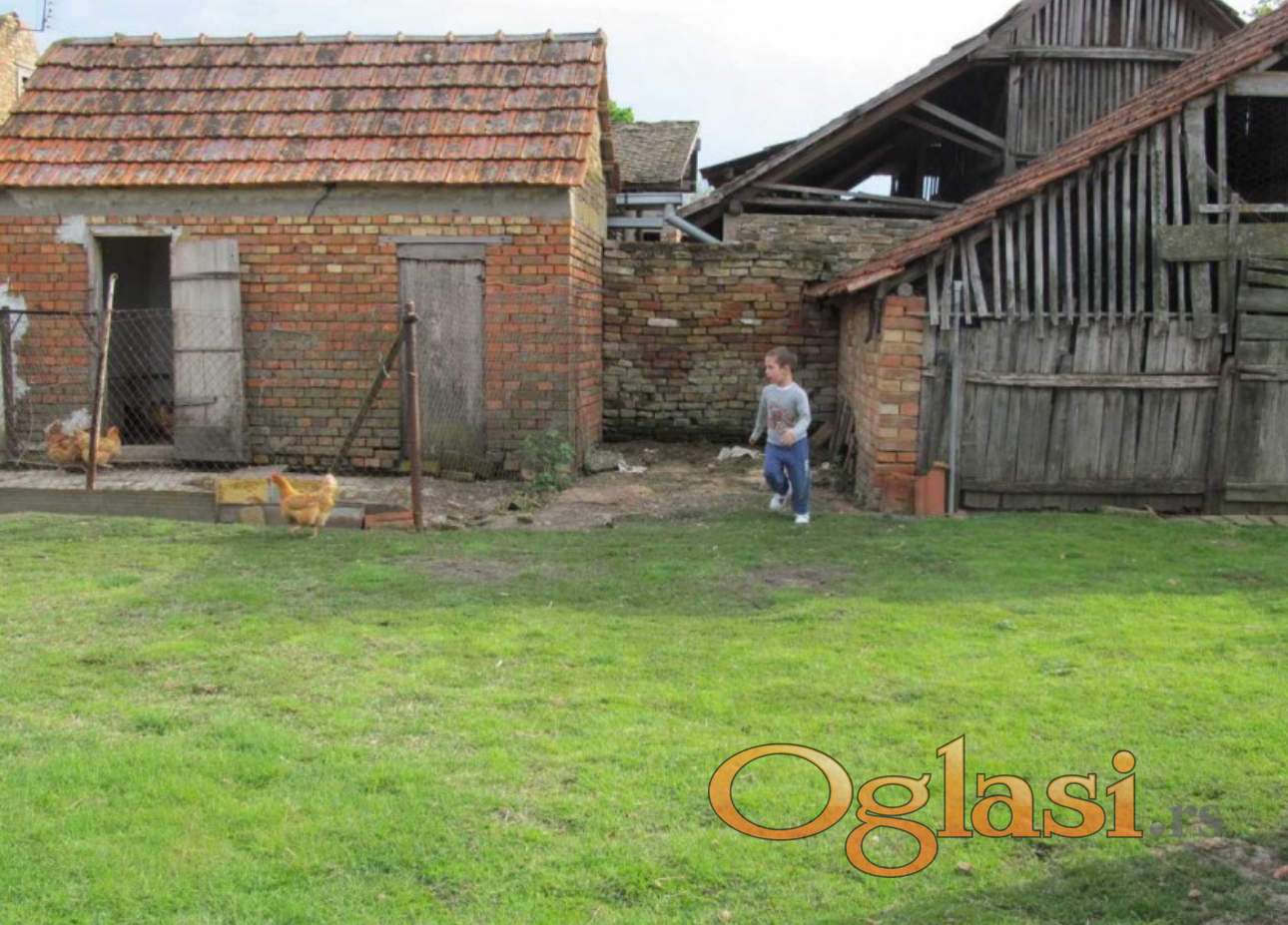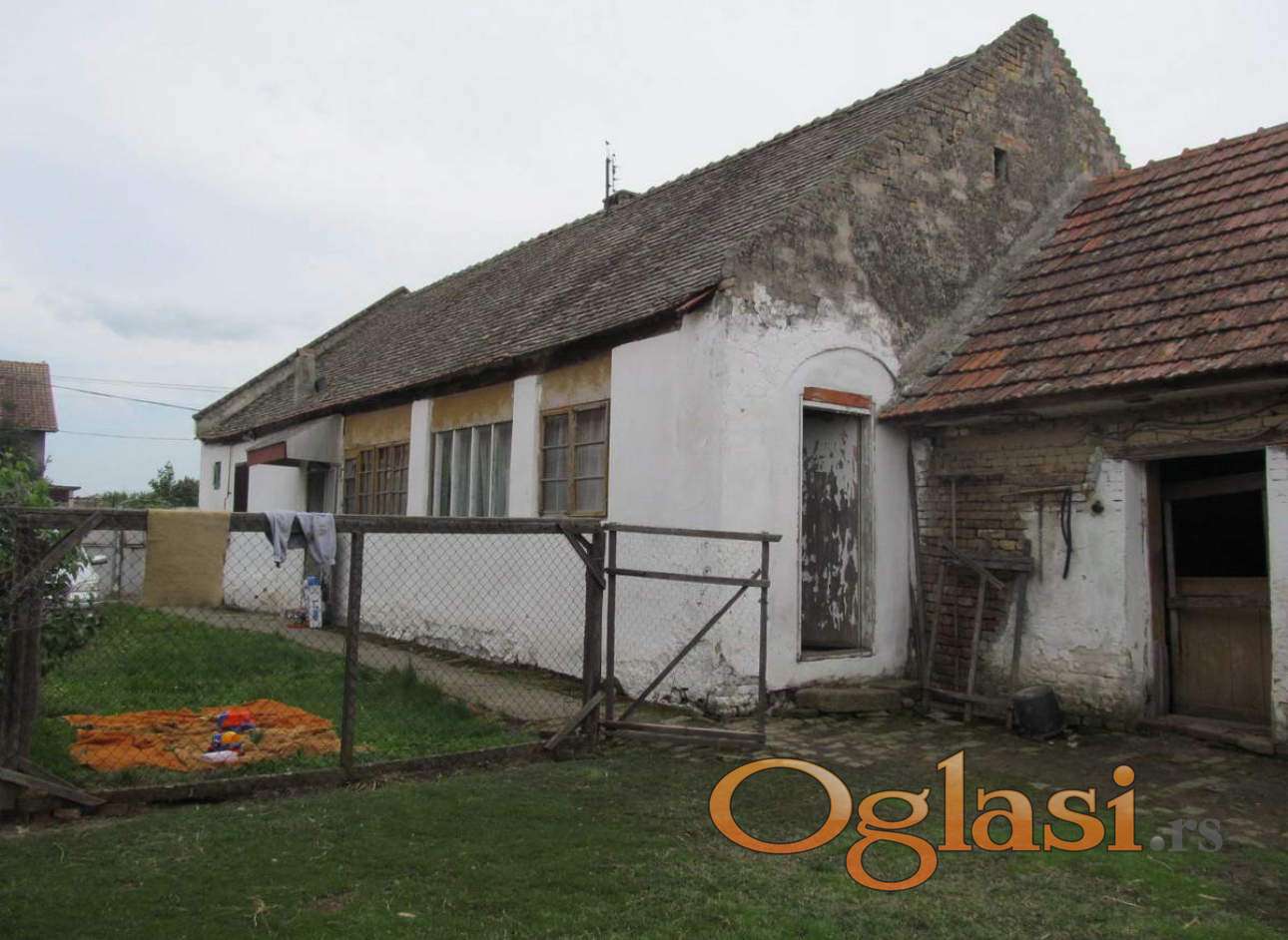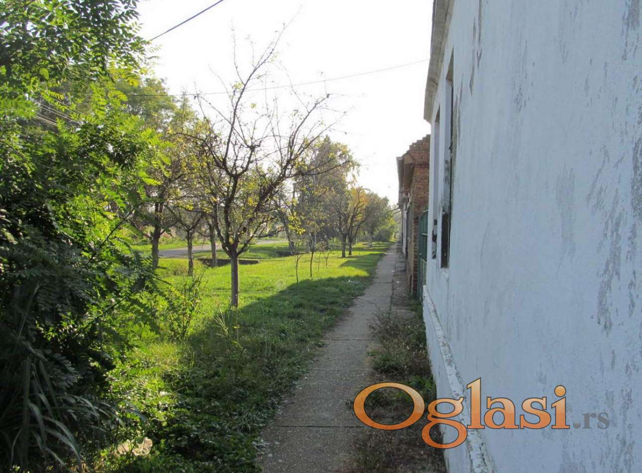 Prodaje se četvorosobna kuća površine 120m2 na placu površine 16 ara. Plac je podeljen u dva dela. Na prvom su kuća, štala, pilićar, ambar sa betonskim prostorom za svinje i velikom betonskom površinom, a na drugoj strani ambara je još jedna prostorija. S druge strane dvorišta je pušnica uz koju je manja i niža ostava (sve prostorije, osim kuće, su od cigle) i tu je još pokrivena nadstrešnica, zagrađena sa tri strane, oko 12m2. Kuća ima struju, vodu, gas i prodaje se nameštena. Kuća ima čeitri sobe u nizu i ostavu. Celom dužinom kuće je zatvoreni konk u kojem su kupatilo i kuhinja, koji su vratima odvojeni od ostalog dela konka. Ima i veliki, prostran i visok tavan. Potrebno ulaganje. Uknjižena 1/1.