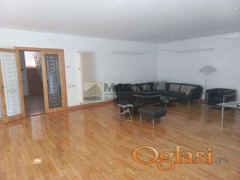 Ova prelepa vila je smeštena na jednoj od najprestižnijih lokacija u Beogradu, u srcu Senjaka, ali odiše mirnom atmosferom i zelenilom koje osvaja.