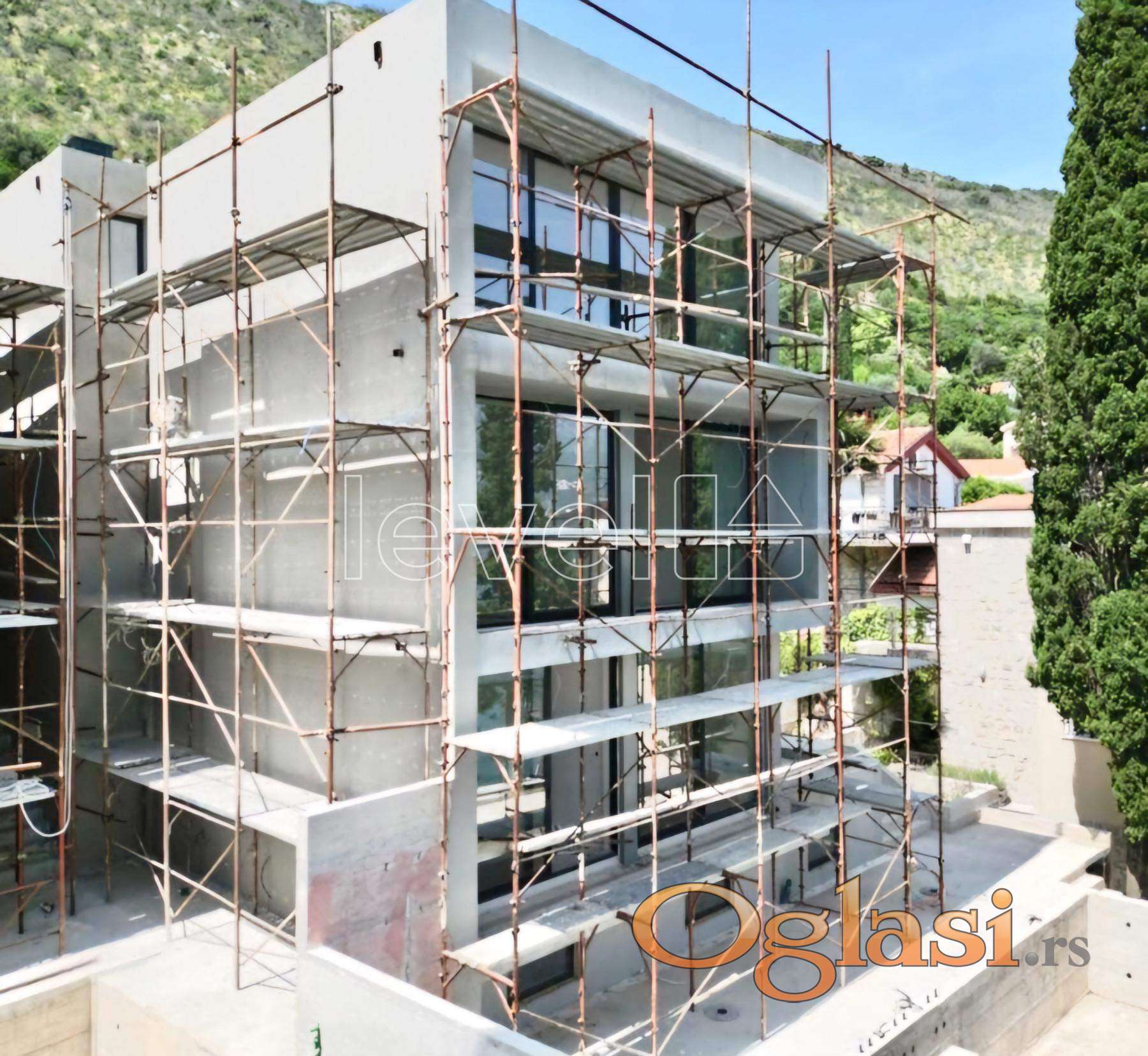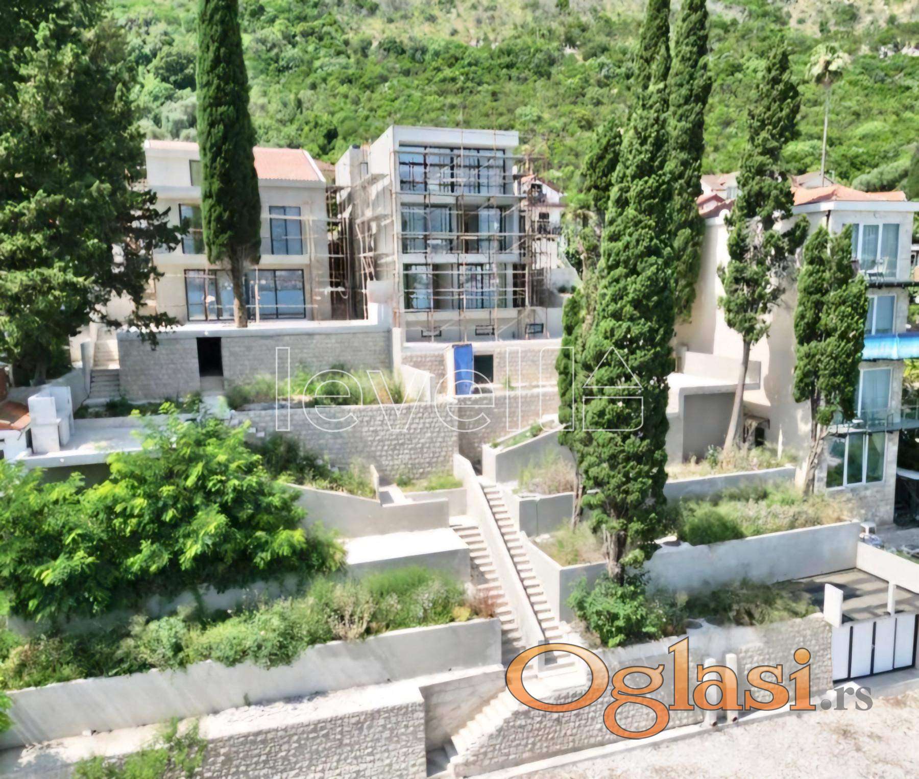 Ova savremena vila površine 400 m² smještena je na placu od 651 m², u prvoj liniji uz more, u elitnom dijelu Bokokotorskog zaliva. Vila se prostire na tri etaže + suteren, i opremljena je svim sadržajima neophodnim za komforan i luksuzan boravak.