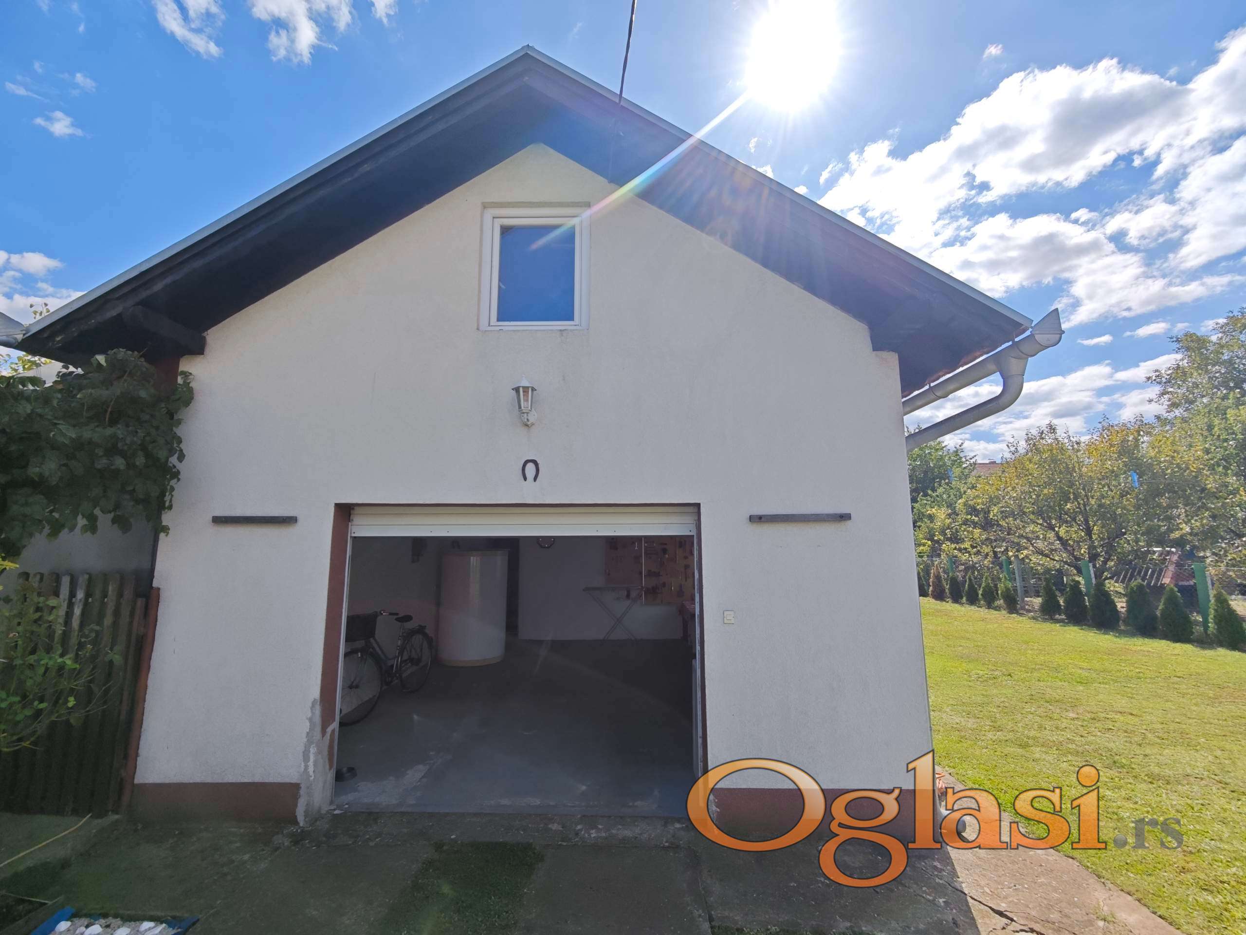 U dvorištu se nalazi garaža sa pomoćnim prostorijama ukupne površine oko 40 m², sa rolo vratima i tavanskim prostorom iznad, letnja kuhinja i više ostava. Tu je i bušeni bunar sa tehničkom vodom.