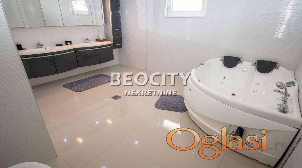 Agencijski ID: 124173, 4a, spratna, uknjižen. Na prodaju LUX kuća sa kompletnim nameštajem. Kuća se sastoji iz tri nivoa. Prvi nivo je polu suteren sa kotlarnicom za grejanje na struju i pelet. Kotao na pelet je nov, nije upaljen. Drugi nivo je prizemlje koje se sastoji iz ulaznog hodnika, stepeništa, velikog dnevnog boravka, kuhinje sa trpezarijom, gostinjskog toaleta, spavaće sobe, kupatila i direktnog izlaza u garažu. Dnevni boravak krasi predivan Svarovski luster sa dva vodopada i dekorativnom rasvetom. Treći nivo je prvi sprat koji se sastoji iz 5 spavaćih soba ( jedna spavaća soba je MASTER sa kupatilom u njenom sastavu) , kupatila, terase i galerijskog pogleda na dnevni boravak. Kuća poseduje podno grejanje koje u kombinaciji sa granitnom keramikom pruža prijatan osećaj toplote. U dvorištu su izvučene strujne kao i vodovodne instalacije za letnjikovac i bazen. Više informacija na: www.beocitynekretnine.rs Agencijska provizija 2%. Telefoni: 060/555-3901 • 011/319-2323. Kontakt van radnog vremena: kancelarija@beocitynekretnine.rs