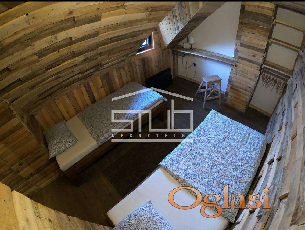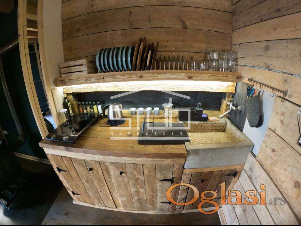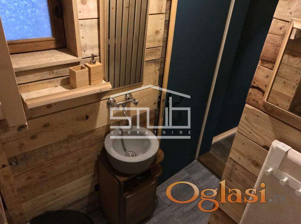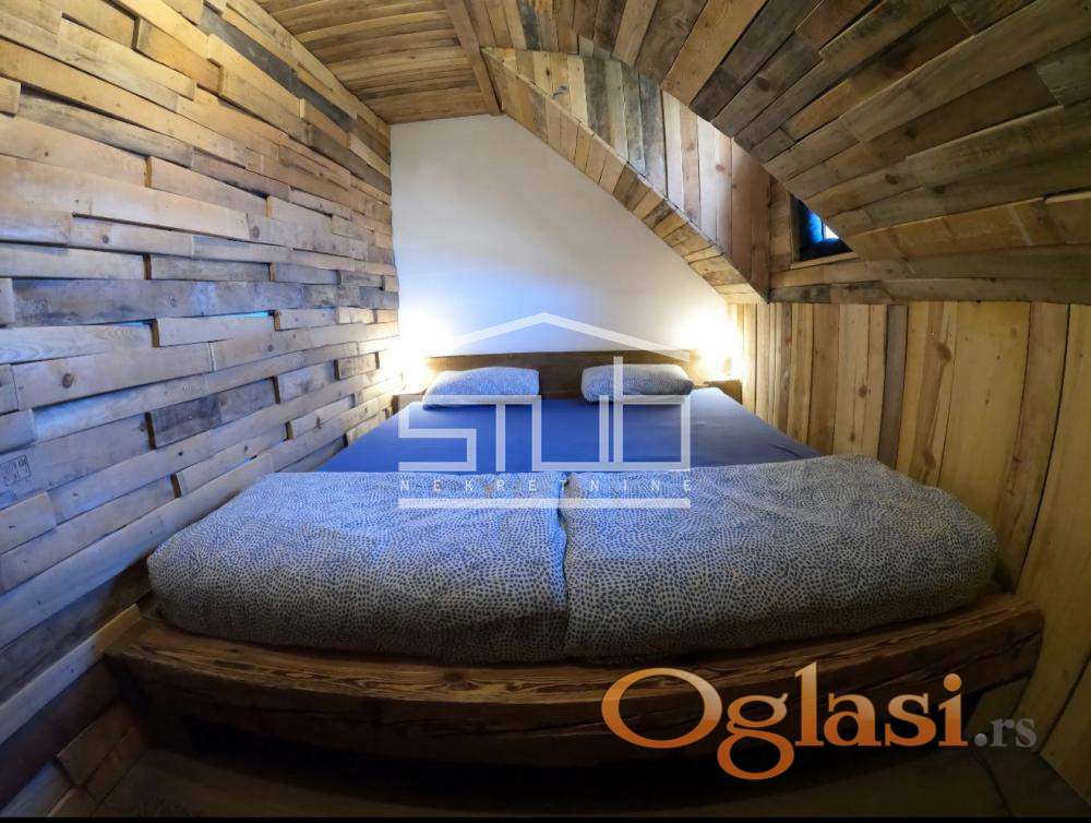 Površina: 58m2 + spoljna sauna od 9m2 + pripadajuće dvorište sa parking mestom i japanskom drvenom kadom.
