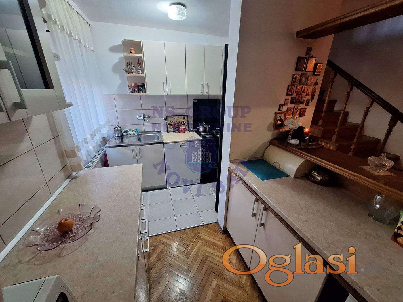 Predstavljamo vam kvalitetetno građenu porodičnu kuću na fantastičnoj lokaciji. Izuzetno interesantano projektovana i podeljena na funkcionalne celine. Sastoji se od četri etaže: veliki podrum sa četri prostorije; u prizemlju dnevni boravak sa galerijom, kuhinja, toalet, hodnik, i mini salon; na medjuspratu dve spavaće sobe, kupatilo i galerija i u potkrovlju velika soba na dva nivoa. Grejanje je centralno sa dve peći /gas i drva/. Domaćinski održavana sa lepim urednim dvorištem, Lokacija fantastična, a ipak u lepoj mirnoj ulici. Pozovite naše agente da zakažete gledanje ove odlične porodične kuće.
