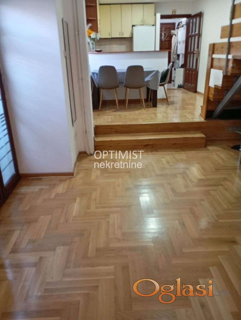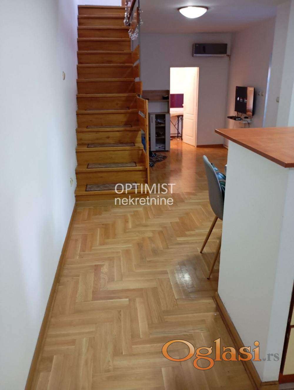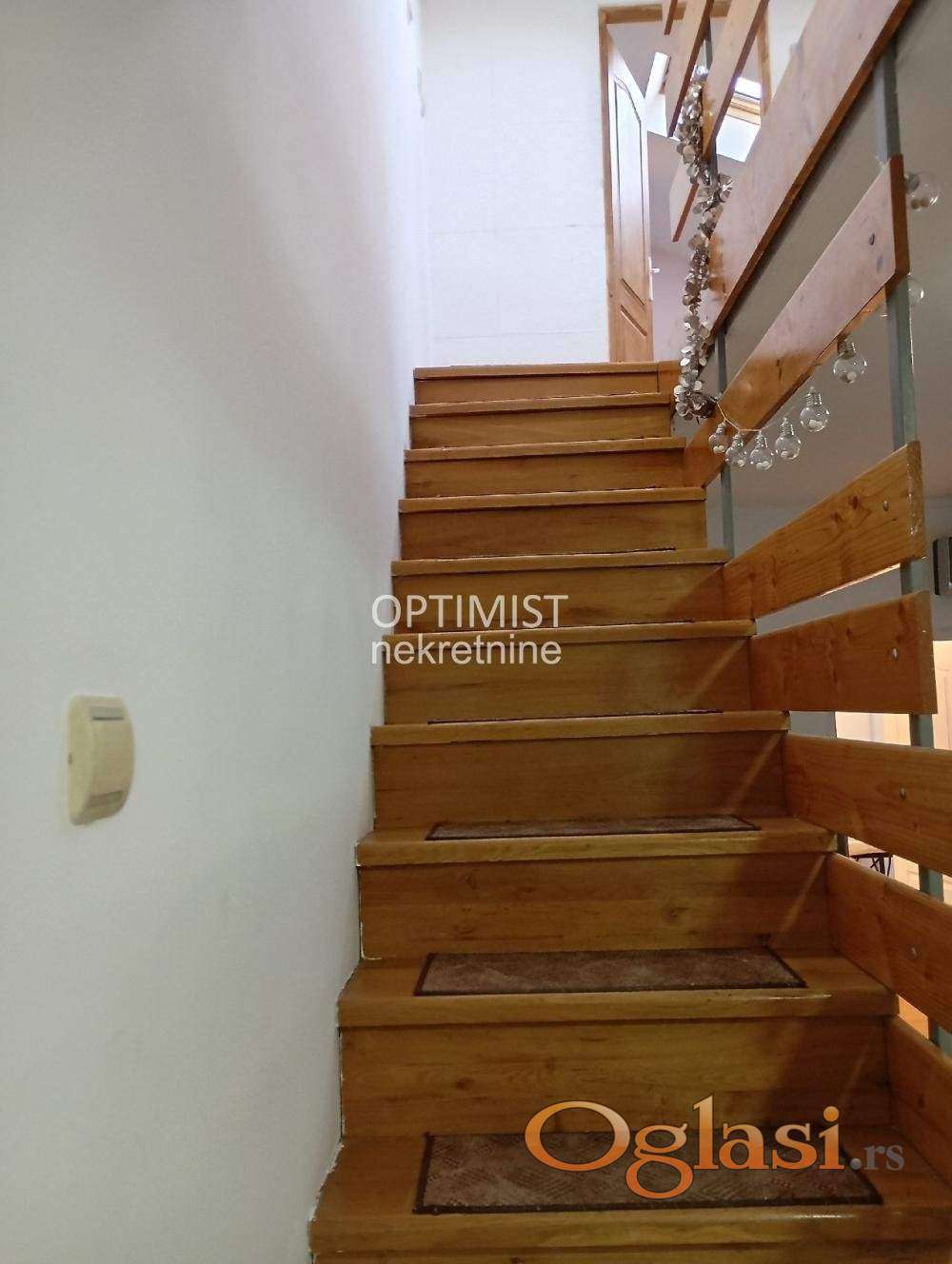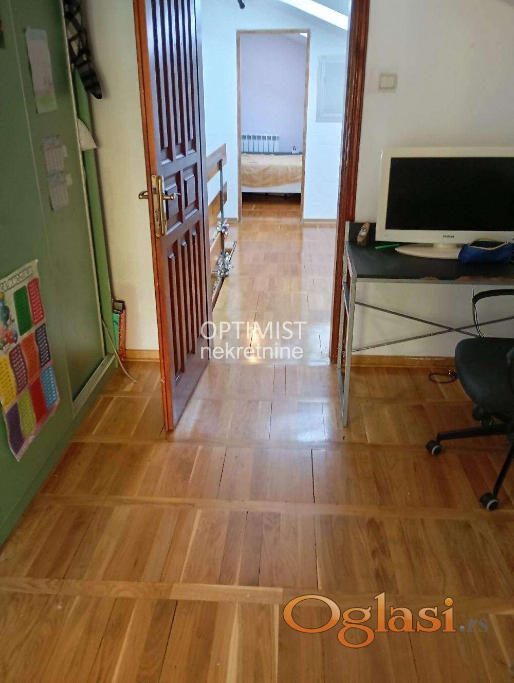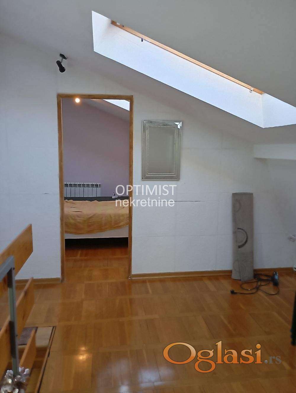 Optimist nekretnine vam nude uknjiženu, odmah useljivu, kuću na dva nivoa, 54m2+54m2, u Učiteljskom naselju, u blizini raskršća Bulevara kralja Aleksandra i Ustaničke ulice, Aviv parka i ostalih objekata za snabdevanje.
