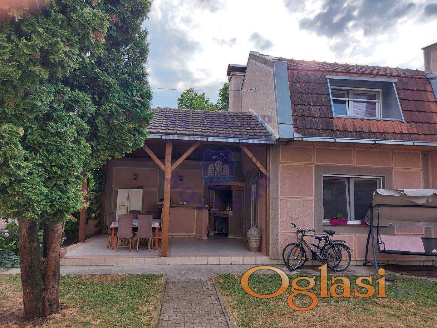 Na prodaju je porodična kuća čvrste gradnje, zidana pre 25 godina, sa lepom pikovanom fasadom koja odiše elegancijom i trajnošću. Kuća je funkcionalno raspoređena i idealna za veću porodicu koja želi mir, udobnost i blizinu svih sadržaja.Sastoji se od prizemlja, međusprata i prvog sprata, sa ukupno šest prostranih spavaćih soba, kuhinjom sa trpezarijom i velikom dnevnom sobom koja je izuzetno svetla i prijatna za boravak. U dnevnoj sobi se nalazi prelep kamin koji pruža poseban šarm prostoru, kao i mala dekorativna fontana koja unosi mir i jedinstven ambijent.Kuća poseduje dva toaleta i jedno kupatilo, kao i vesernicu u zadnjem delu, pored koje se nalazi i manja garsonjera — idealna za goste, izdavanje ili kao dodatni stambeni prostor.Na međuspratu se nalazi još jedna dnevna soba, savršena za opuštanje ili porodična okupljanja.Ispred kuće se prostire velika terasa sa zidanim roštiljem, okružena zelenilom i lepim dvorištem koje pruža osećaj privatnosti i mira. Kuća se nalazi u centru Veternika, na svega 5 minuta hoda od škole, vrtića, doma zdravlja, pijace i pošte. U neposrednoj blizini su i svi veći marketi, prodavnice i ostali sadržaji neophodni za udoban porodični život.Pored kuce se nalazi velika garaza i radionica ,a ispod kuce veliki podrum.Ova kuća spaja kvalitetnu gradnju, komfor i odličnu lokaciju — pravi dom za veliku porodicu koja želi sve na dohvat ruke. Pozovite nas.