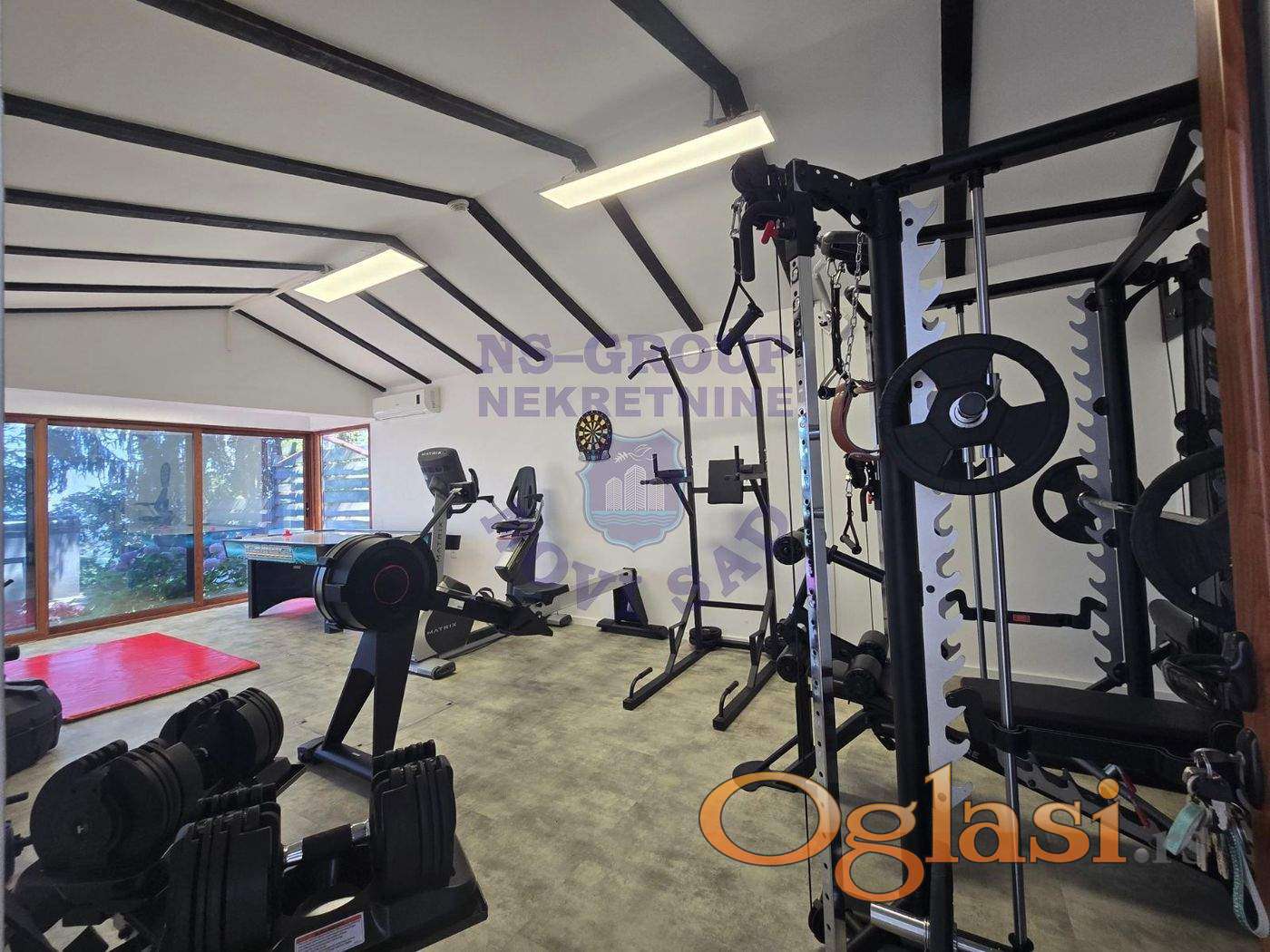 ~Superluksuzna kuća na Popovici na nadmorskoj visini od 320m, u neposrednoj blizini nacionalnog parka, sa dvorištem sa stoletnim borovima i drugim četinarima i sa garantovano najboljim pogledom u okolini Novog Sada koji se ne može zakloniti! Nalazi se u gradskoj zoni, na 9km od centra Novog Sada, a u bliskoj budućnosti na pola sata autoputem od Beograda. U blizini ima autobusku stanicu. Ima struju preko dva brojila, gradsku vodu, gradsku čistoću, uličnu rasvetu i redovno se čisti sneg zimi. Kuća ima 388m2 uknjiženih, sa objektima teretane, bazena i saune. A zbog visoke ograde i puno zelenila potpuno je zaklonjena od pogleda spolja. Po strukturi kuća je Su+Pr+1, ima veliku dnevnu sobu visine 6m, 4 spavaće sobe, 3 kuhinje, 4 kupatila i još 2 wc-a, veliku salu za proslave za 30-ak osoba, vinski podrum, vešernicu, novu saunu, novi bazen sa velikim turbo džetom, nekorišten spoljni đakuzi za 3-4 osobe, opremljenu novu teretanu, radionicu i natkriveni parking za 3 vozila sa profi priključkom za punjenje elektro vozila. Prodaje se komplet nameštena sa gomilom opreme, a sav nameštaj i oprema su stari 2-3 godine, koliko je kuća i useljena. Kuća je građena oko 2010. godine ali je komplet renovirana pre dve godine, od temelja do krova. Na kući su veliki portali sa protivprovalnim staklom. Ima novi bilijar, vazdušni hokej, stoni tenis, koš, bazen, teretanu, veliku trambolinu. Dvorište je puno ogromnih borova, palmi, maslina, lavandi, raznog cveća, juki, kamelija, crvenolisnih šljiva, tise i dr. Kompletan travnjak od oko 500m2 i sve biljke su pod automatskim zalivnim sistemom. Kuća ima rezervoar za vodu u slučaju nestašice, depurator-omekšivač vode za celu kuću, agregat, profesionalnu ventilaciju u sali za proslave, kamin, veliki roštilj sa delom za sač, pušnicu, dva sistema za grejanje, na gas i novu toplotnu pumpu. Nove klime su u svim prostorijama, frižideri, mašine za pranje, veliki ledomat, profi hjumidor, zvučnici po celoj kući, alarmni sistem i kamere na sve strane, internet, kablovska, puno led rasvete i dr. U koliko ste zainteresovani nazovite naše agente prodaje! b121