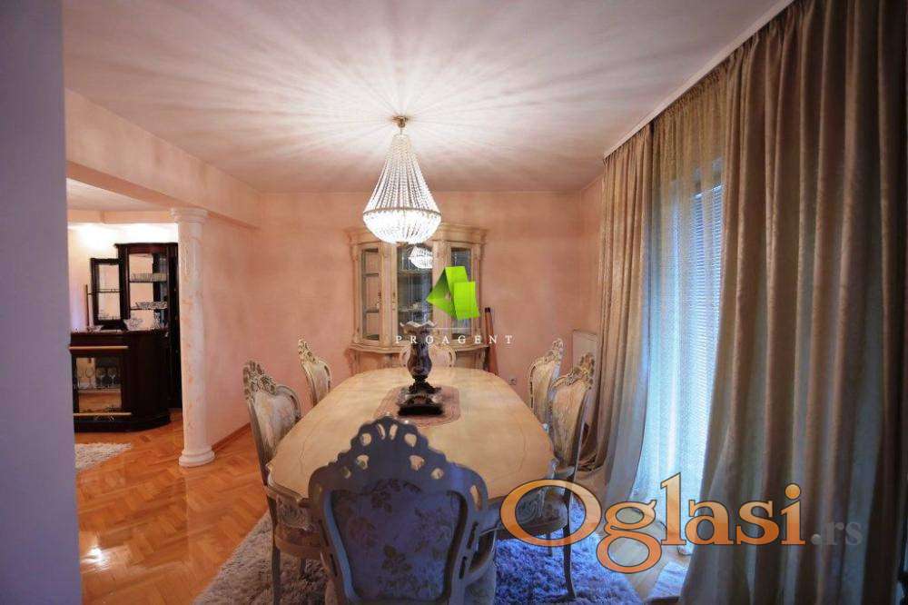 Ako ste u potrazi za velikom porodičnom kućom koja je ostvarenje Vaših snova, onda pogledajte ovu ponudu. Prodaje se predivna luksuzna kuća na lepoj lokaciji na Panteleju. Kuća je ukupne površine 350m2, poseduje Sut+I+II sprat. Nalazi se na placu površine 4,5ari. Samu nekretninu karakteriše moderna arhitektura i visok kvalitet gradnje, gde se pridavala važnost apsolutno svakoj pojedinosti korišćenjem najkvalitetnijih materijala i uređaja. Kuću odlikuje i odlična prostorna organizacija enterijera i eksterijera. Opremljena kvalitetnim, modernim nameštajem i uređena sa stilom, ova kuća predstavlja pravo oličenje elegancije. Sve etaže su uređene s jasnom vizijom koja je uspešno pretvorena u prefinjen i luksuzan dom. Iza kuće se nalazi bazen, savršen za opuštanje pod toplim suncem i osveženje, udobne ležaljke koje omogućuju relaksirajuće dane potpunog užitka. U sklopu kuće se nalazi i garaža. Kuća se prodaje sa kompletno opremljenim i uređenim enterijerom. Sigurno idealno mesto za vaš porodičan, kvalitetan i komforan život. Hvala Vam što ste pogledali oglas. Za više informacija o ovoj ili drugim nekretninama i zakazivanje razgledanja kontaktirajte agenta na broj telefona iz oglasa (poziv, sms, viber) ili putem e-maila. Kompletnu ponudu dostupnih nekretnina možete pronaći na našem sajtu. Agencija Proagent nekretnine je upisana u Registru posrednika pod brojem: 940.