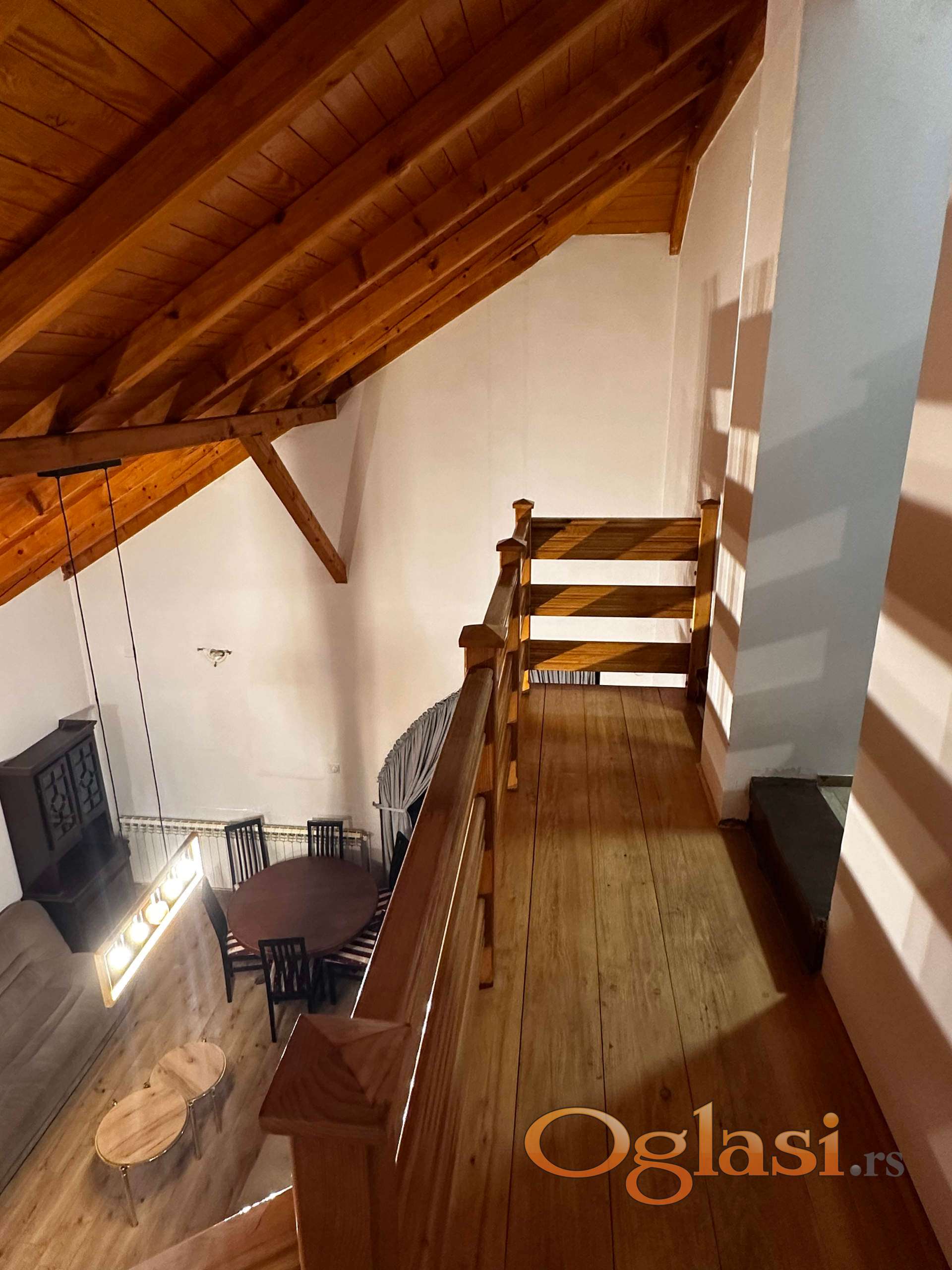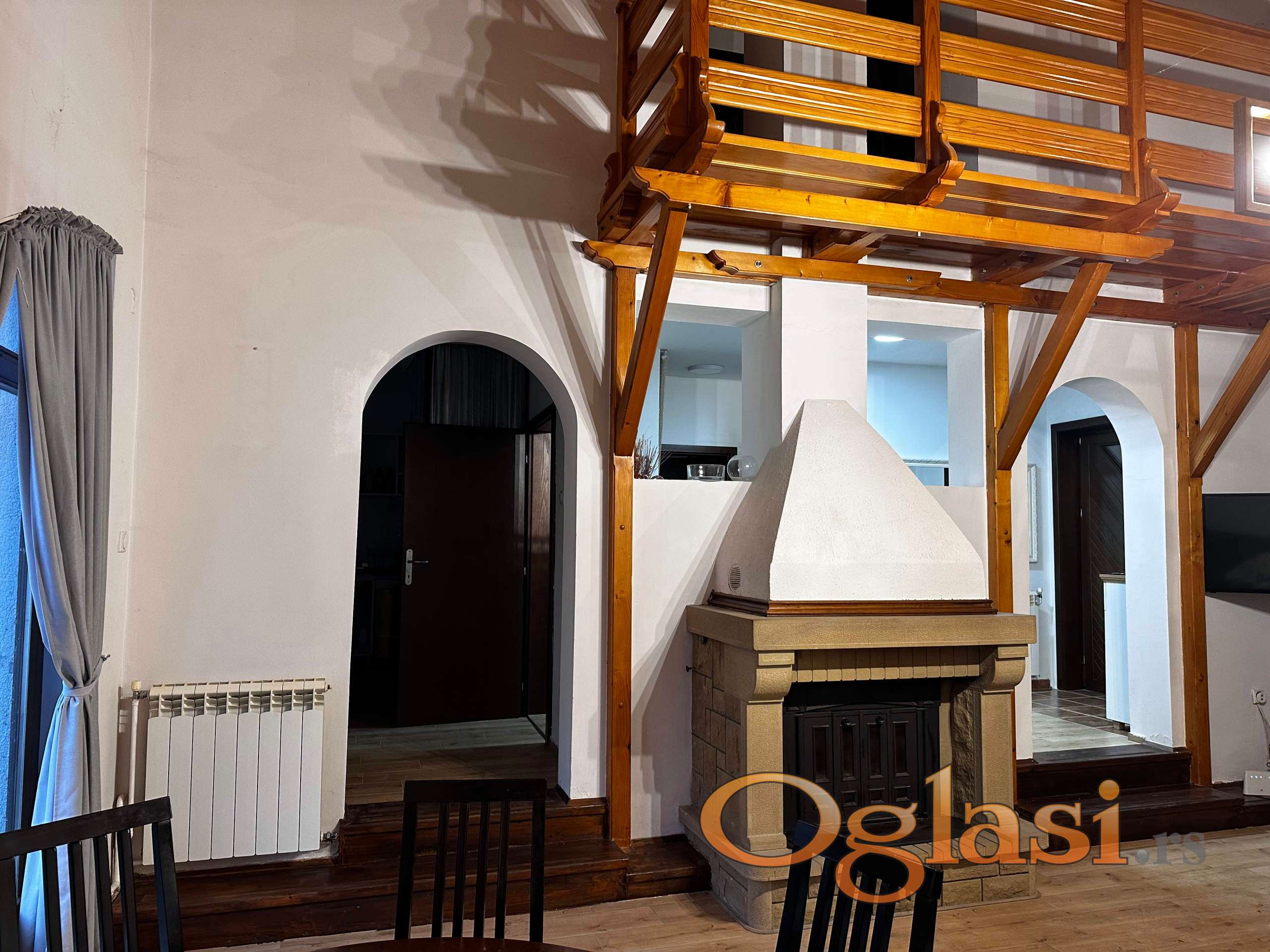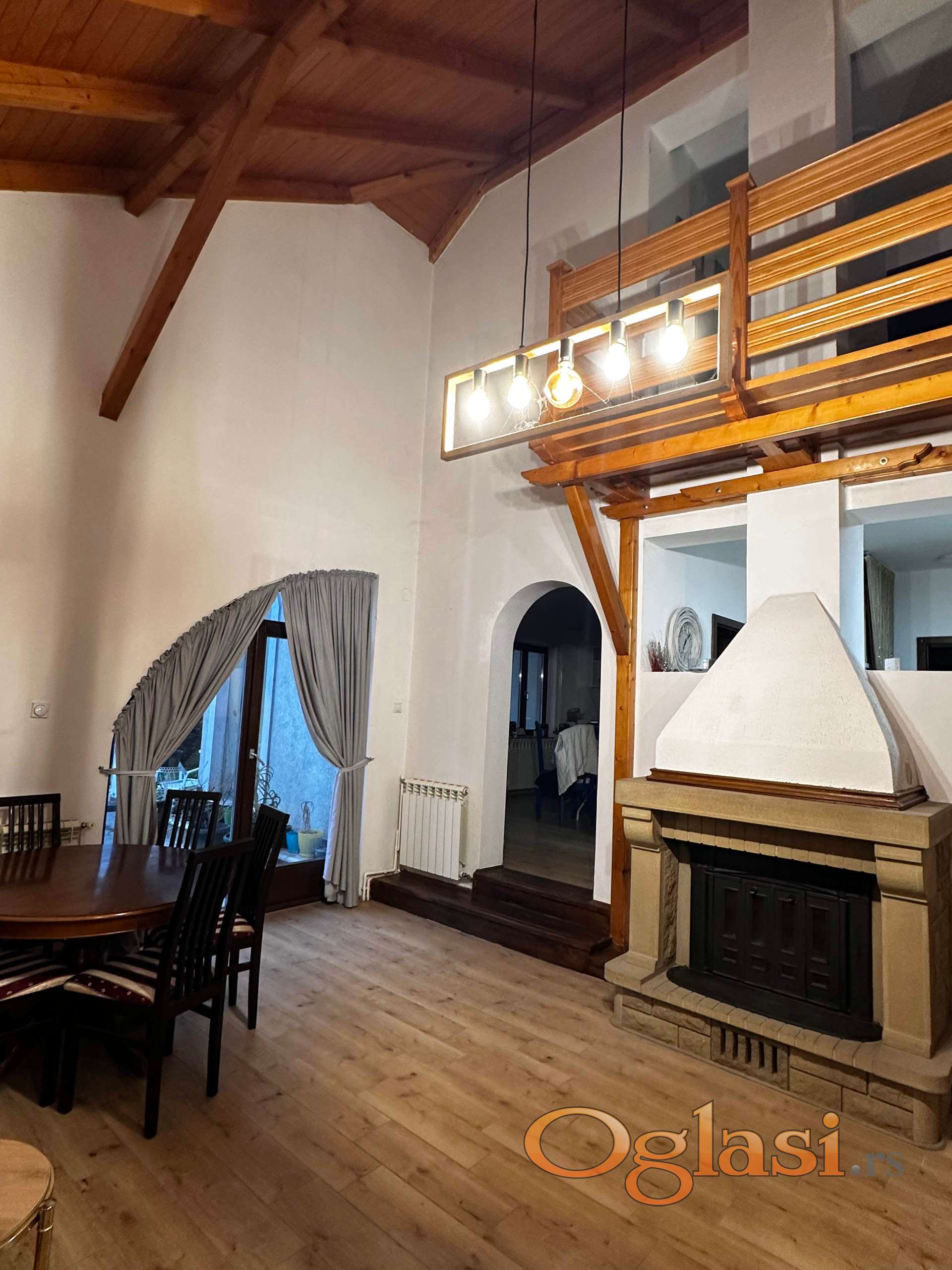 - Kuću površine 119 m² (korisne površine 153 m²) na sprat sa dve terase, dva kupatila, tri spavaće sobe, dnevni boravak od preko 40 m² sa velikim kaminom od obrađenog kamena i kovanog gvožđa, i prostranim vrtom