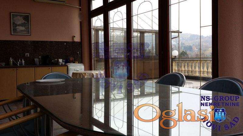 Kvalitetnim materijalima gradjena kuća sa kompletnom infrastrukturom. Uknjižena. Neobičnog projekta. Na tri nivoa. Prilagodjena za odvajanje etaža. Podrum u sastavu ima: vinski podrum, salu za bilijar, podstanicu za upravljanje vodovodne infrastrukture i sistemom etažnog grejanja koje može biti na gas,naftu ili struju. Četvorosobna, lako se može prepraviti u višesobnu, tri kupatila. Prelepe terase. Na prvoj etaži ima dve terase otvorenu i zatvorenu-koja služi kao zimska panoramska. Prelep pogled. Podne obloge mermer,parket visokog kvaliteta.Alu vrata i prozori sa zvučnom i termo izolacijom. Cisterna za vodu 10m3, rezervoar za naftu od 2.000L. Fontana. Pejzažna arhitektura dvorišta(prelep travnjak, ukrasno rastinje), Zalivni sistem HUNTER prskalice ispod travnjaka, sistem zalivanja kap po kap, baštensko osvetljenje. Kapija sa daljinskim otvaranjem, prostorija za odlaganje alata. Kuća je kompletno opremljena, nameštaj rađen je po meri. Video nadzor. Parking unutar dvorišta za 3 automobila, parking ispred.