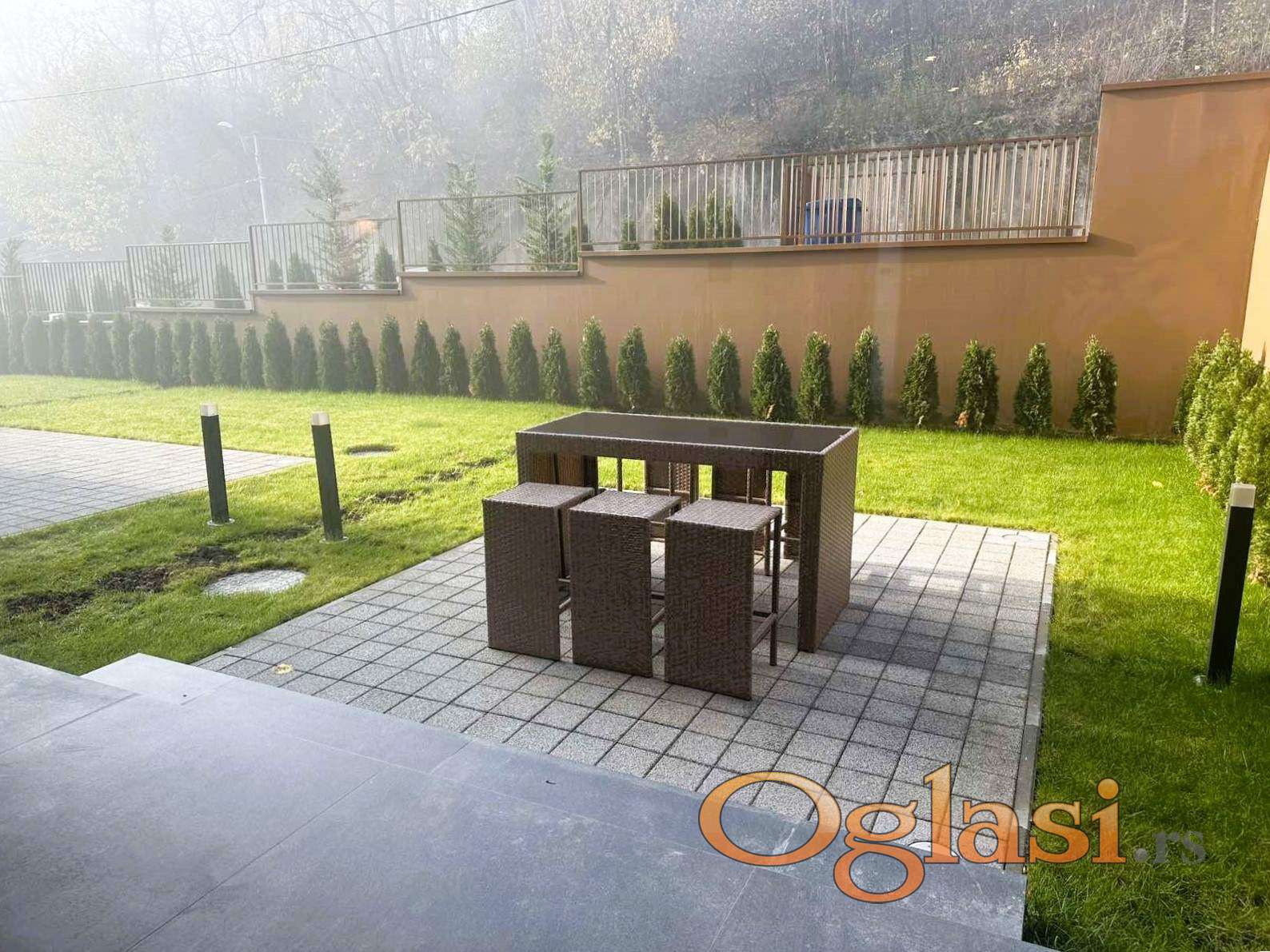 Savski venac, Dedinje, Velisava Vulovića, D’ HOME, luksuzna kuća od 340m2 na tri nivoa sa ugrađenim liftom. Sastoji se od podruma: podrum, tehnička prostorija i dve ostave, prizemlja: dnevna soba sa trpezarijom, kuhinja, toalet i velika bašta, prvog sprata: dve spavaće sobe, radna soba, kupatilo i vešernica, i drugog sprata: velika spavaća soba iz koje se izlazi na veliku krovnu terasu, kupatilo i ostava. Grejanje i hlađenje fan coil sistem. Rađena je kvalitetnim, pažljivo biranim materijalima. Poseduje dva parking mesta sa elektopunjačima.