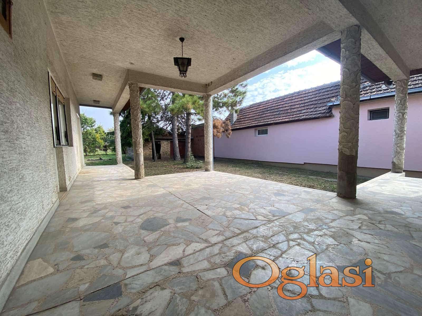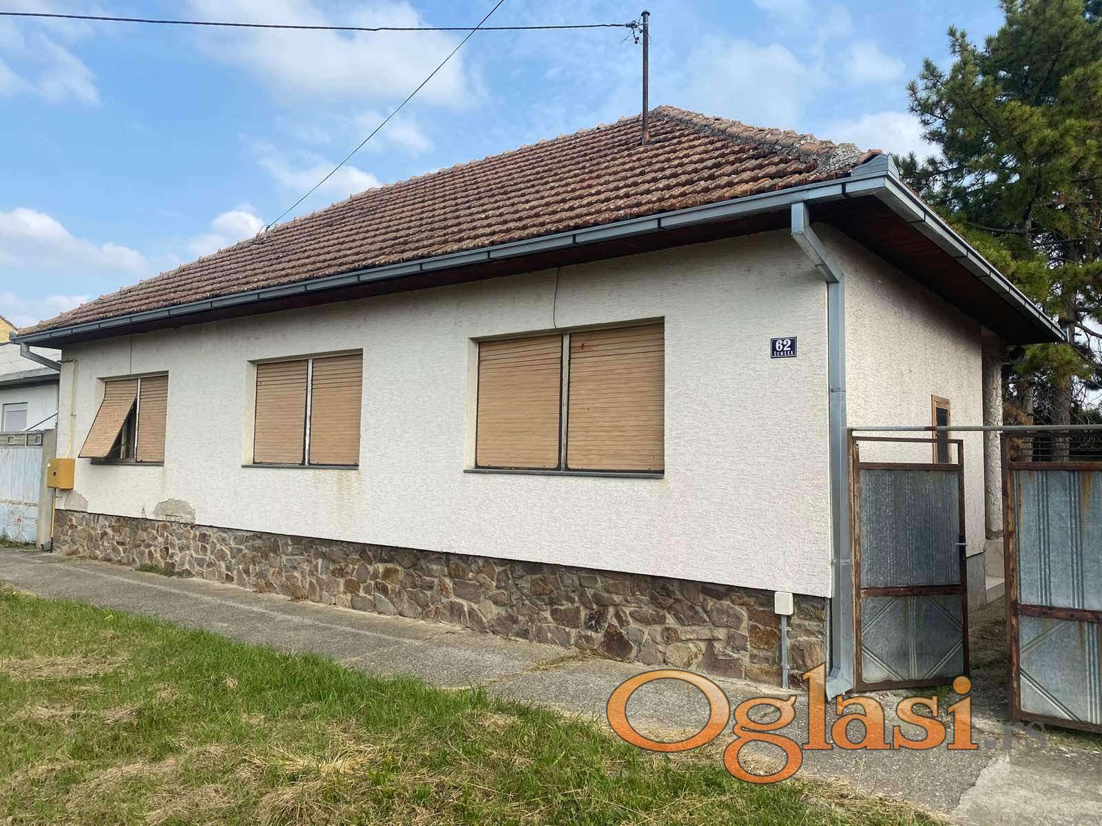 Prodaje se uknjižena prizemna kuća površine 159 m2, na placu od 594 m2, sa dvorišno orijentisanom velikom terasom i pomoćnim prostorijama u sklopu kojih je garaža.