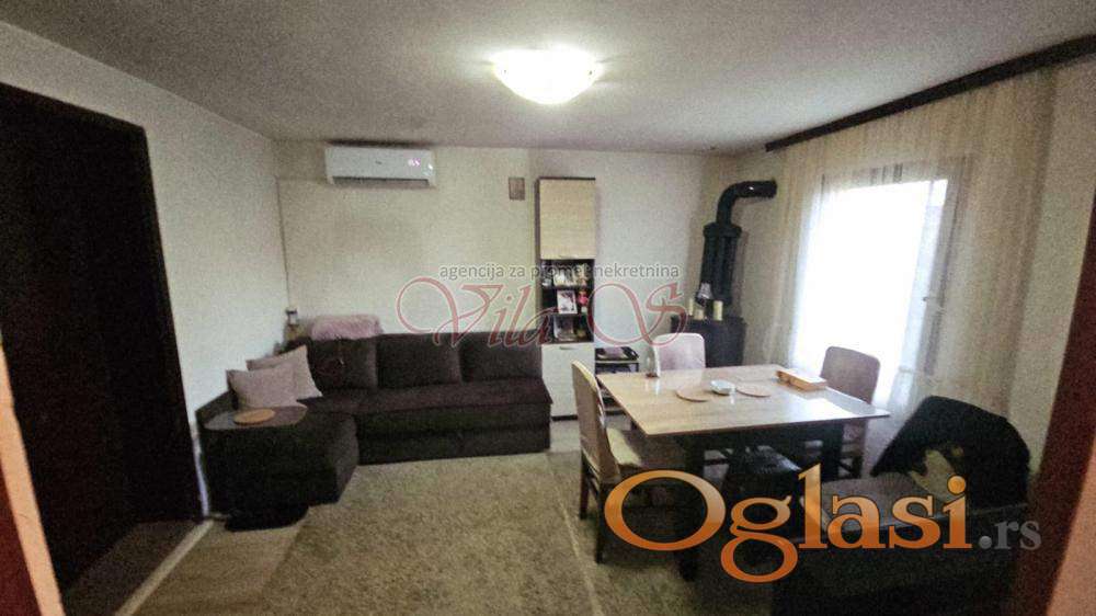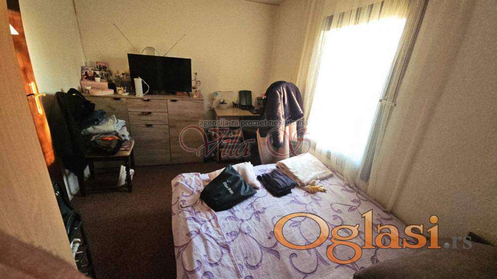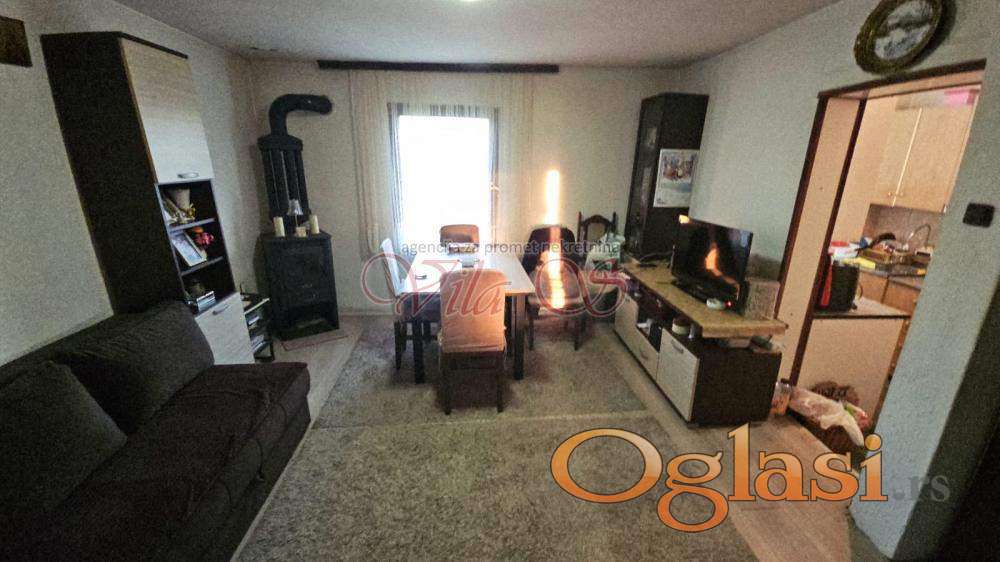 Zasebna kuća sa velikim potkrovljem koje nije završeno i pomoćnim objektima,letnjom kuhinjom od 20tak m2, poljskim wc.om i zgodnim prilazom za kola, budućom garažom. Pogodna za život kao i za poslovni objekat kakvih je toj zoni jako puno. Moguć dogovor i kroz zamenu za dve manje stambene jedinice.