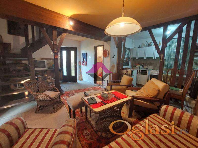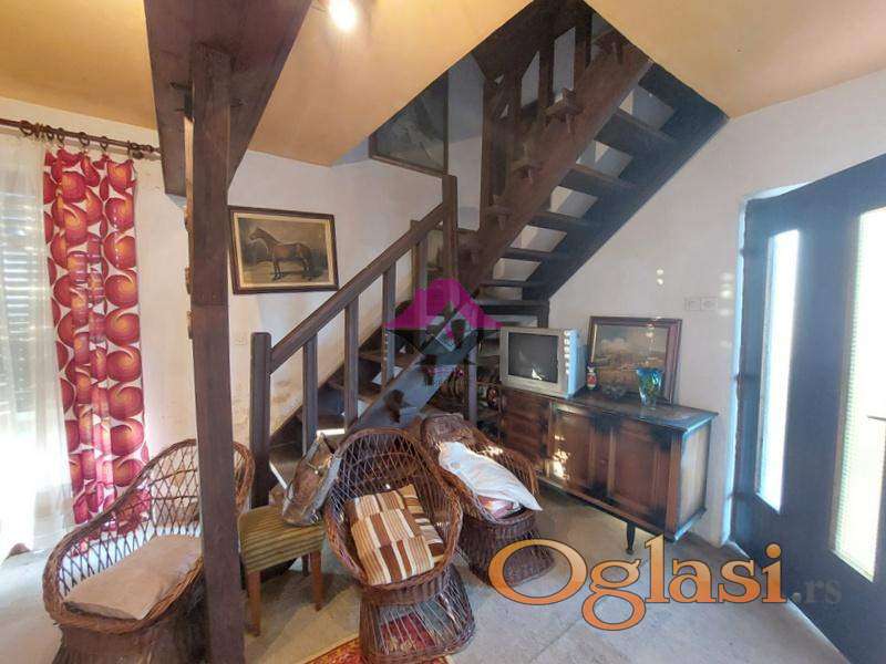 Kuća ima u prizemlju jednu open-space prostoriju koja je dnevni boravak sa kuhinjom i trpezarijom i lepom terasom, kupatilo, a drvenim stepeništem izlazi se na potkrovlje u kojem su smeštene dve spavaće sobe od kojih jedna ima izlaz na terasu sa koje se pruža prelep pogled na valjevski kraj i planine. Prostor u kosini prilaznog hodnika u potkrovlju takođe je u funkciji prostora za odmor ili spavanje.