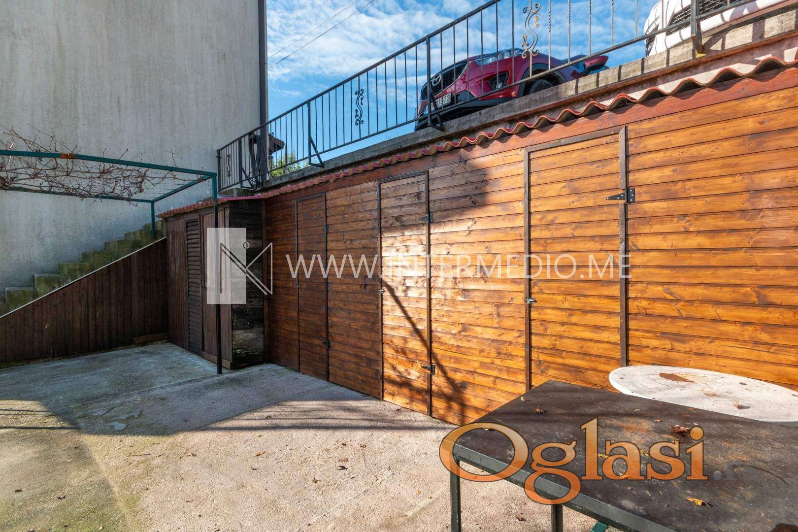 Ispred objekta se nalazi parking prostor za 5–6 vozila. U dvorištu, pored raznih zasada voća, nalaze se sušara, dodatni ostavni prostor, kao i tehnička prostorija za centralno grijanje na pelet.