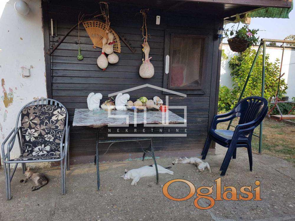 Na placu se nalazi kuća od 120 m2, udaljena 50 m od kapije, oko koje se prostire prelepo dvorište sa zelenim voćkama koje daju razno voće, kao i sa cvećem. Kuća se sastoji od dnevnog boravaka, kuhinje sa terpezarijom, dve spavaće sobe, kupatila, hodnika i velike terase od oko 30 m2.
