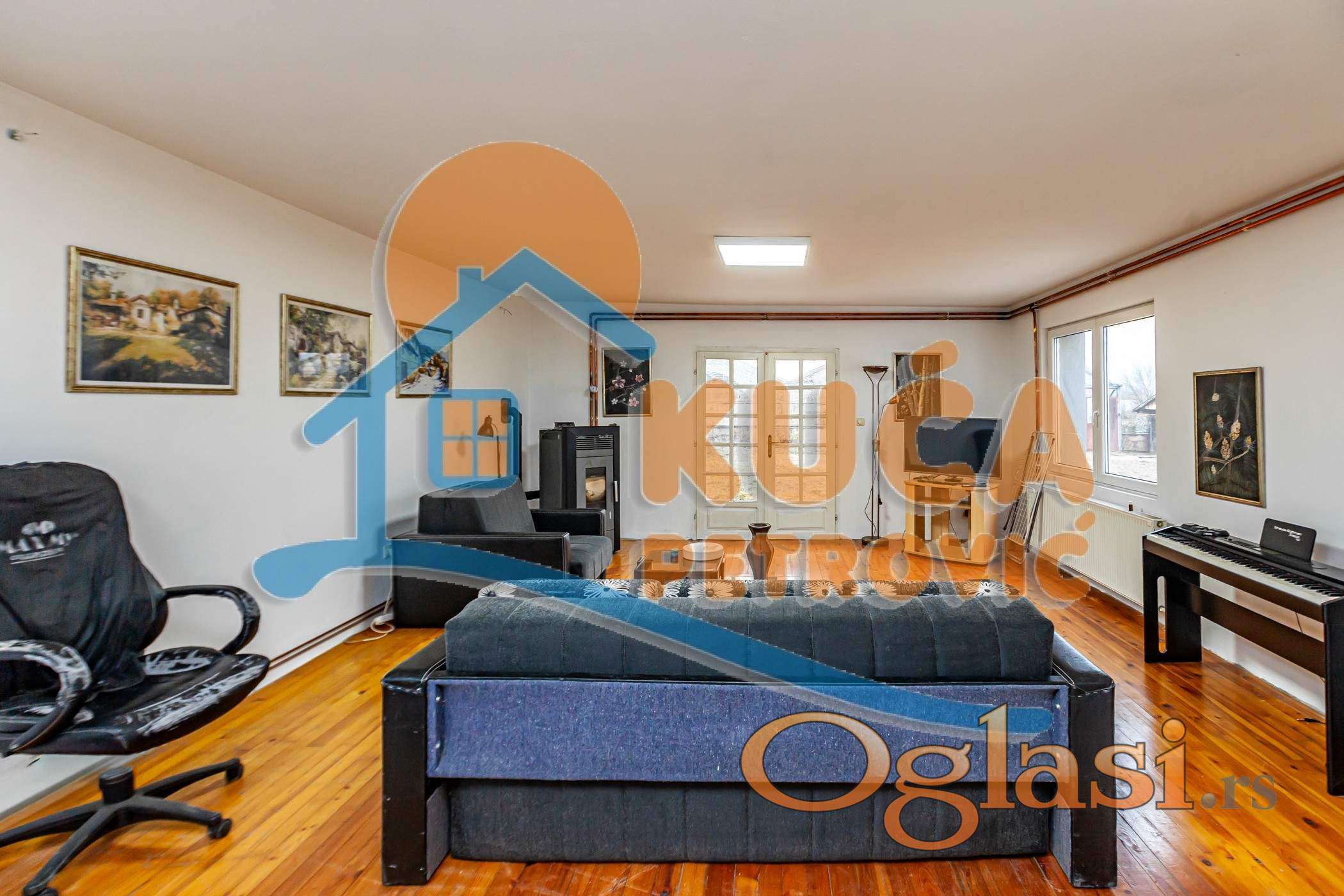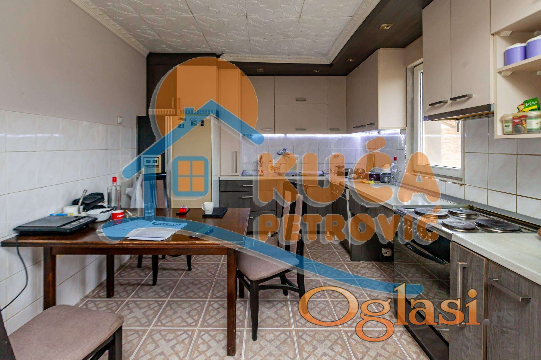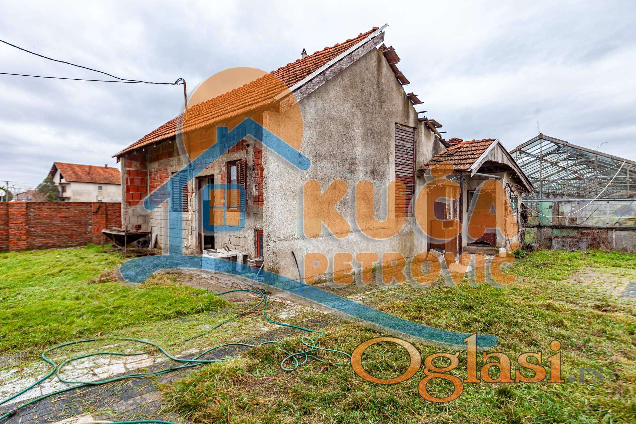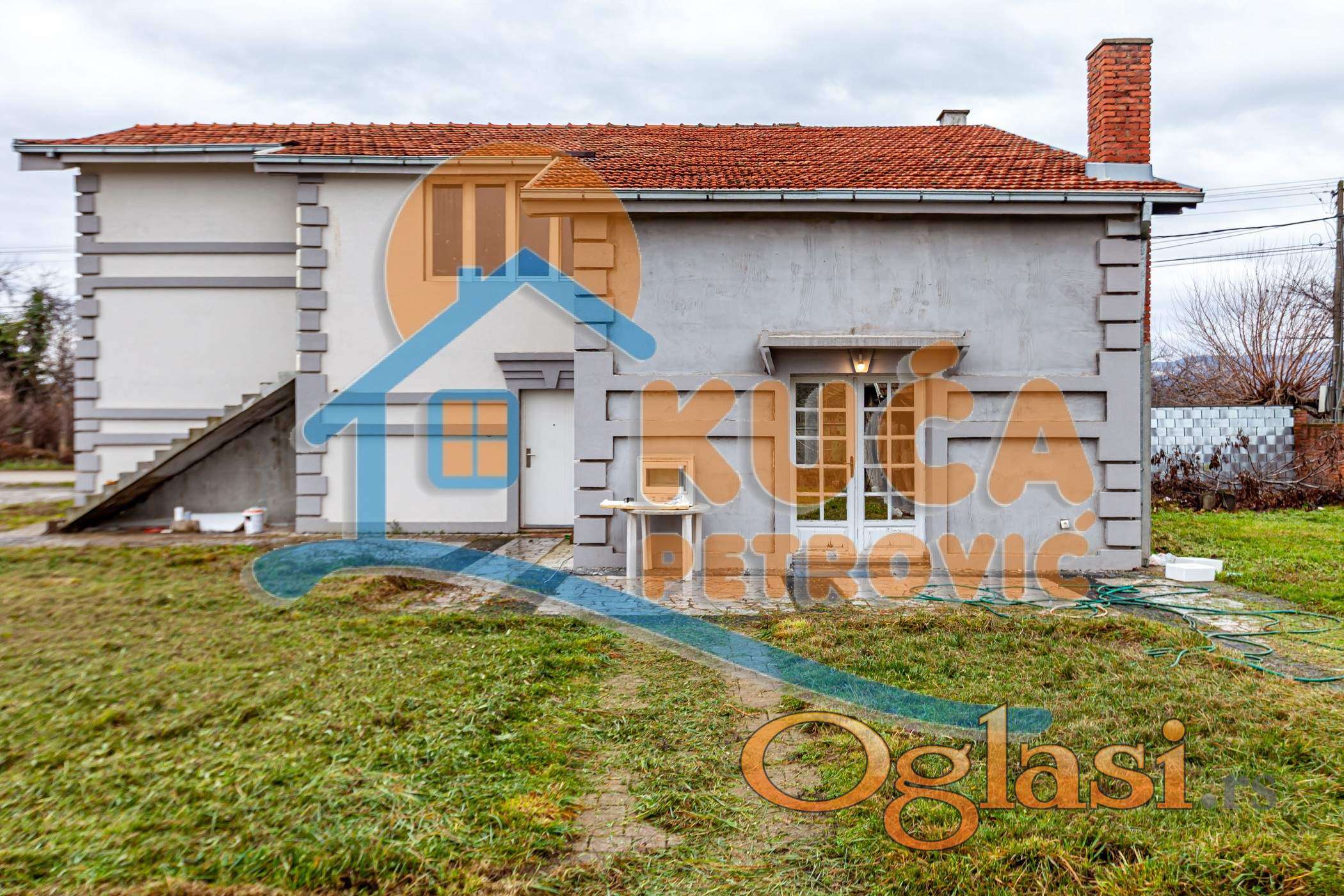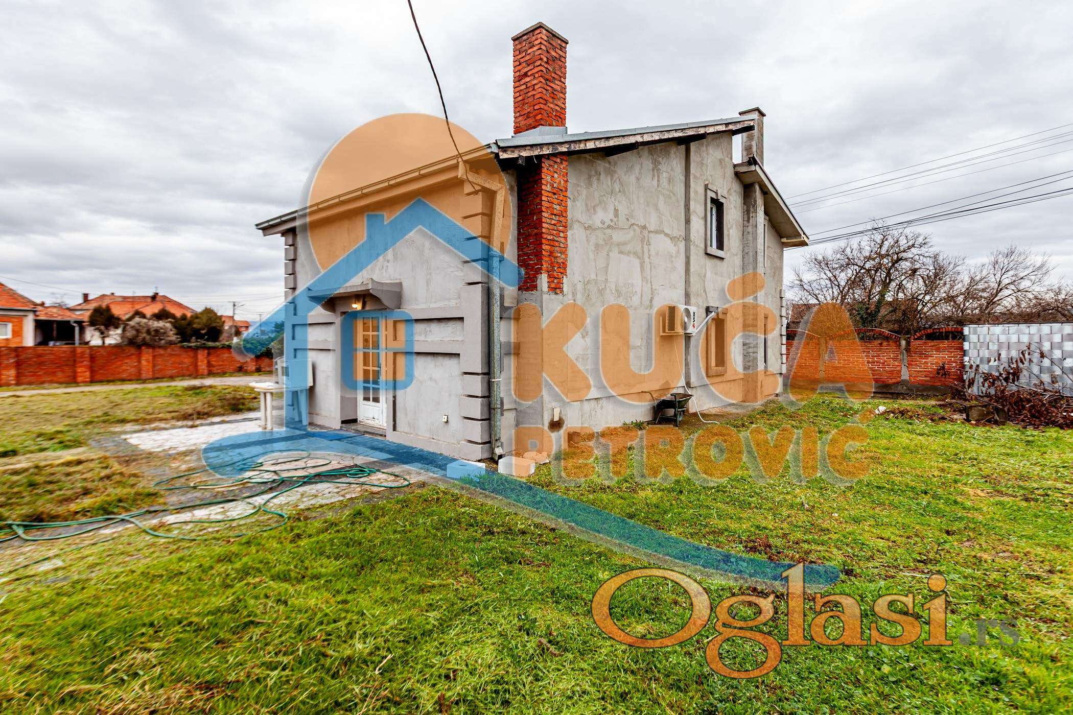 Kuća se sastoji od prizemlja i sprata ukupne površine 272 m2 (136m2+136m2). Prizemlje se sastoji od predsoblja, dnevne sobe sa kuhinjom i trpezarijom, tri spavaće sobe i kupatila. Sprat je u sivoj gradnji (delimično razvedena struja, voda).