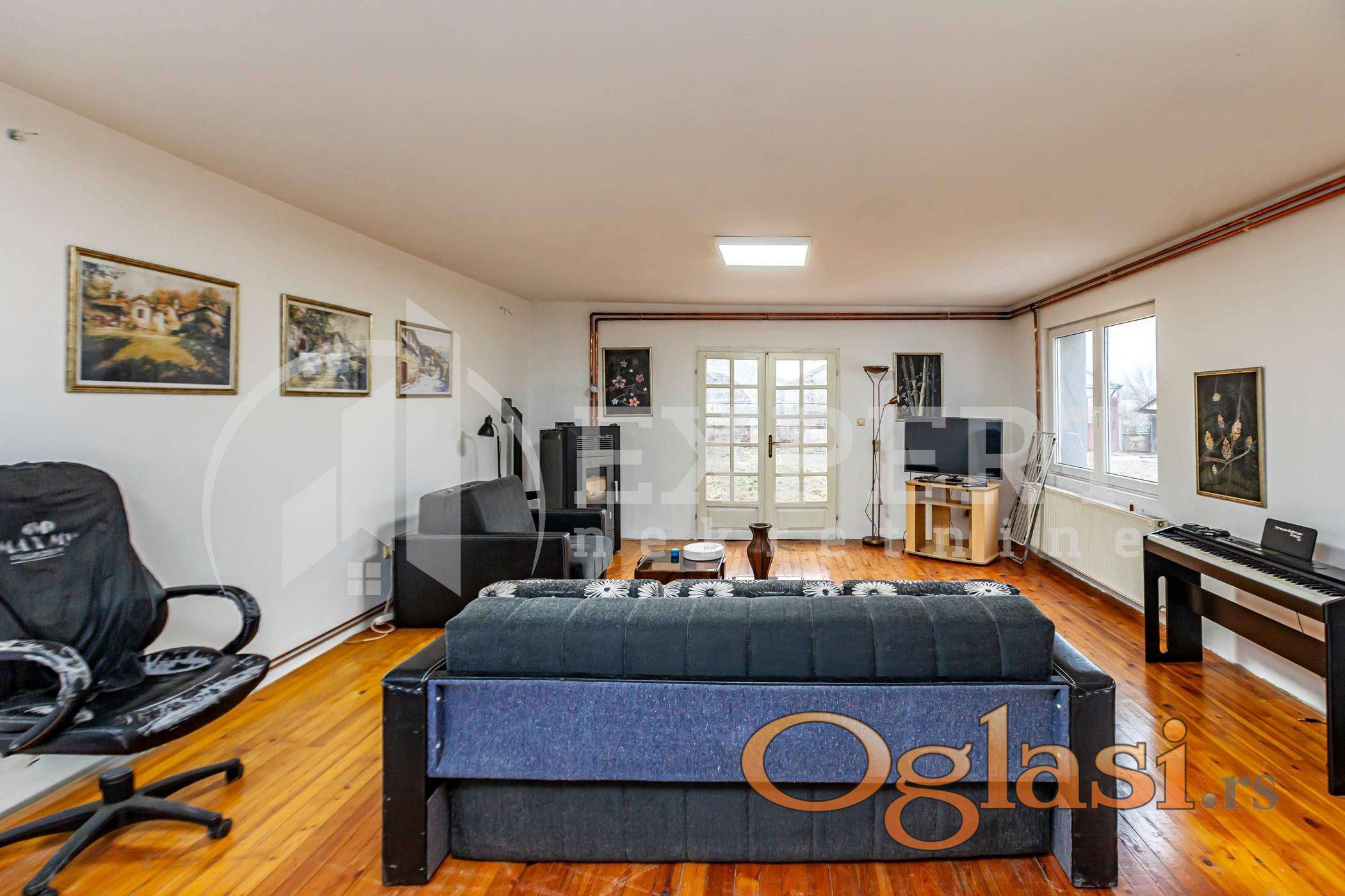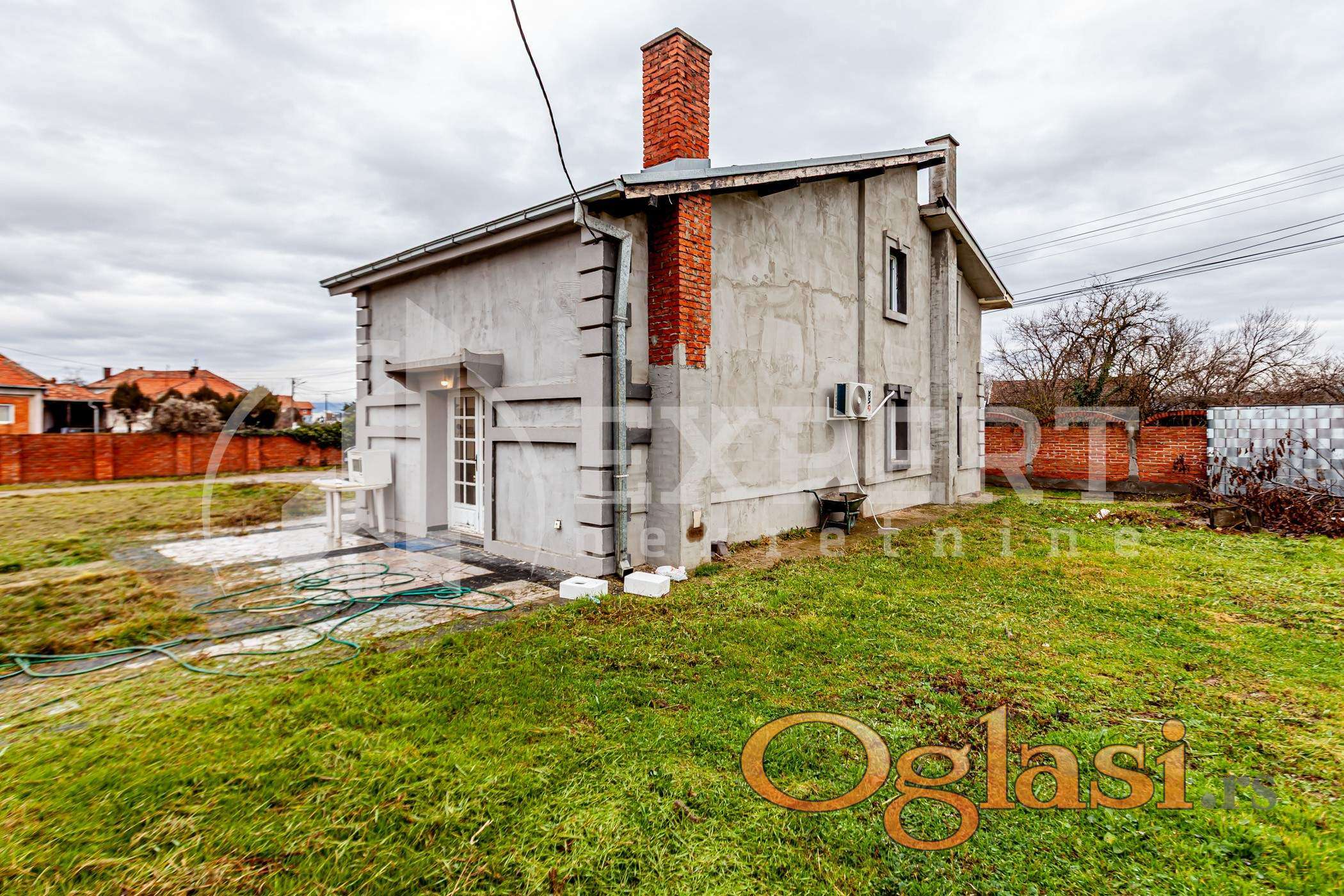 Kuca se sastoji od prizemlja i sprata ukupne površine 272 m2 (136m2+136m2). Prizemlje se sastoji od predsoblja, dnevne sobe sa kuhinjom i trpezarijom, tri spavaće sobe i kupatila. Sprat je u sivoj gradnji (delimično razvedema struja, voda).