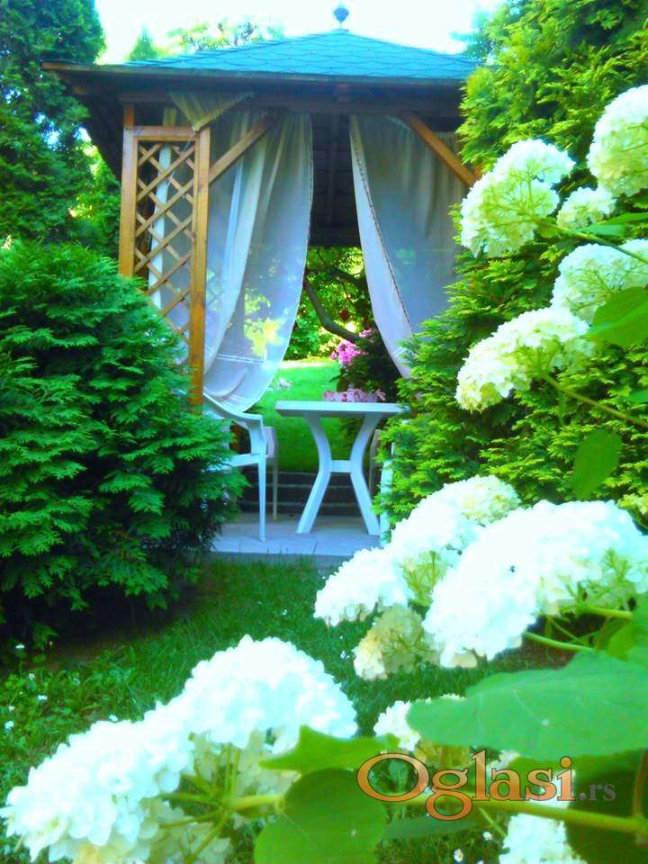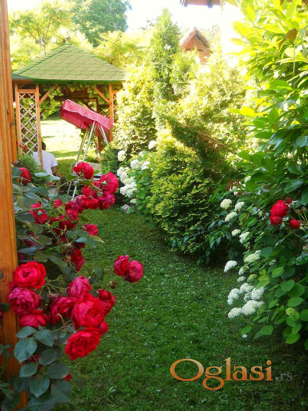 Plac je površine 620m2 sa frontom od 15m pod vrlo blagim nagibom. Ograđen i sa puno zelenila i cveća. U prednjem delu dvorišta nalazi se saletla. Od cveća najzastupljenije su ruže i hortenzije.