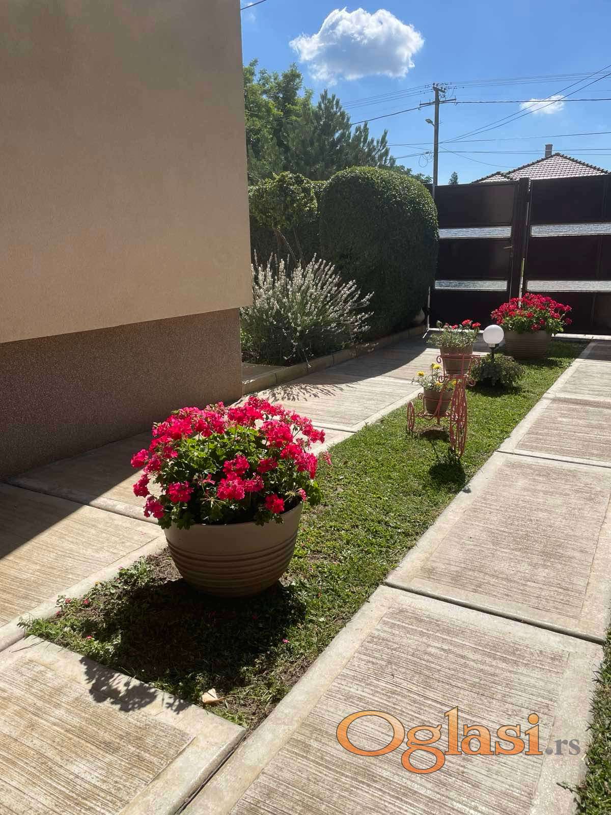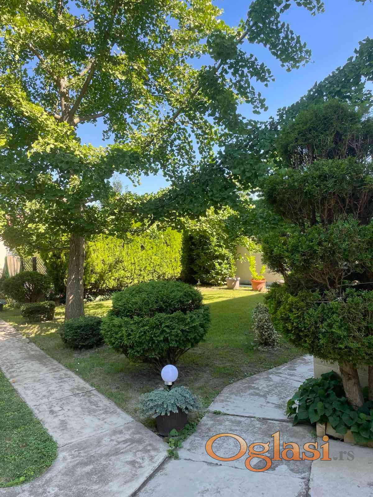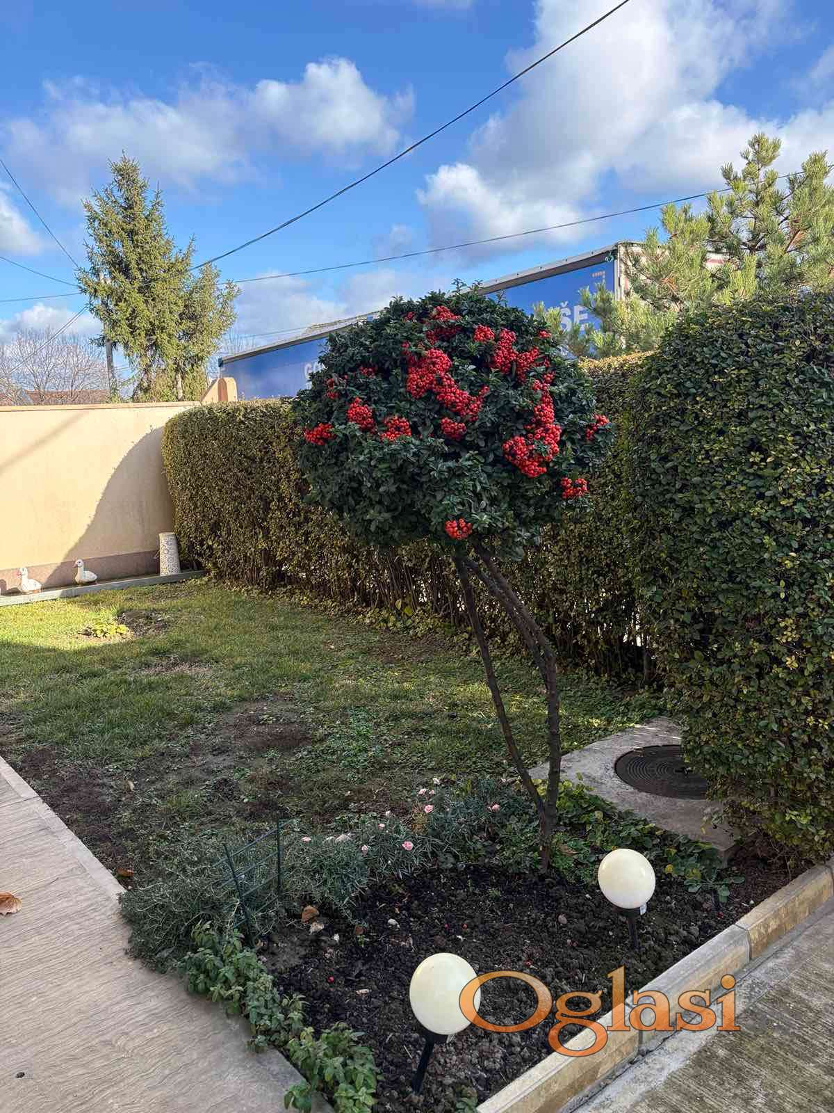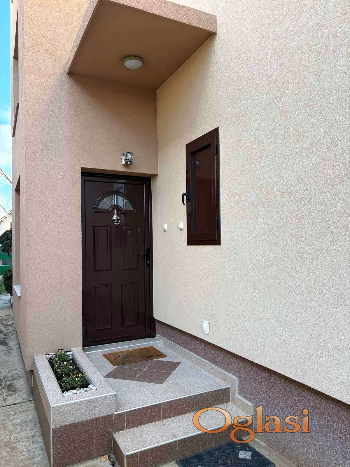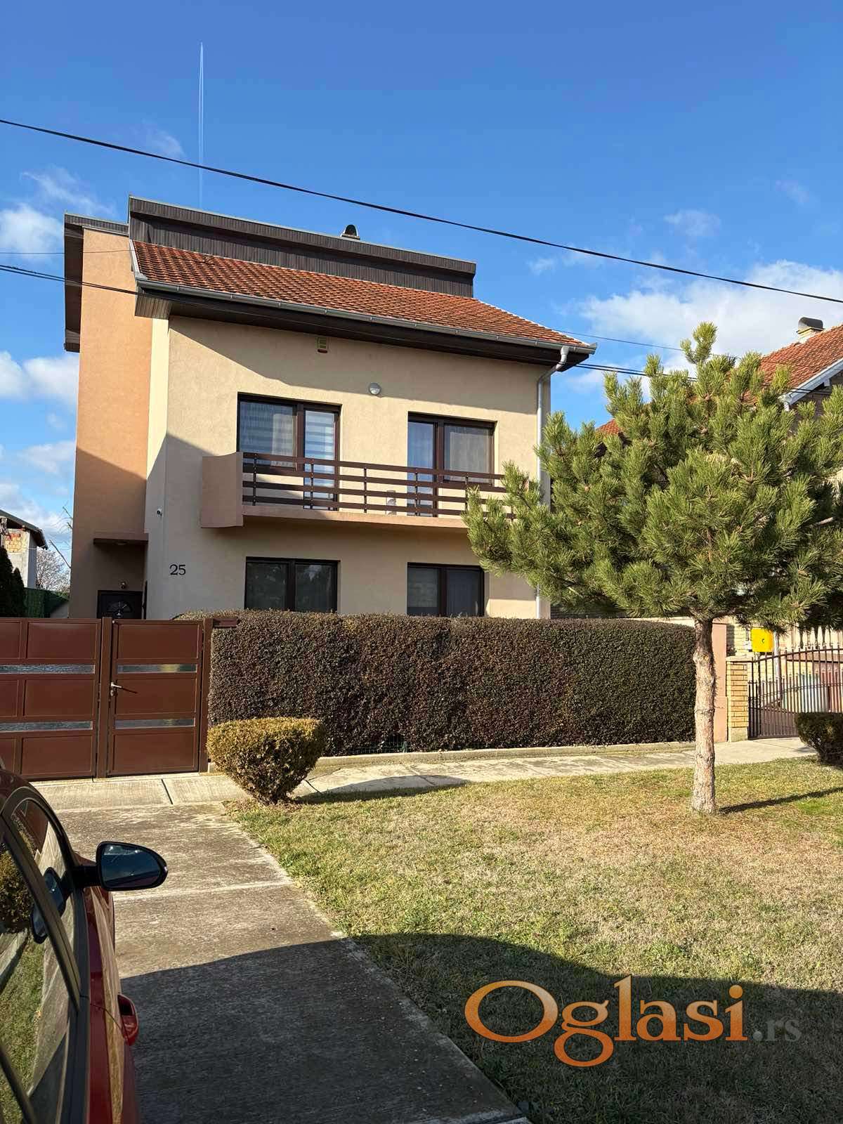Nudimo vam nameštenu spratnu kuću u širem centru Bačkog Jarka, kuća se nalazi u lepoj i širokoj ulici, ima lepo uređeno dvorište. Kuća od prostorija ima: predsoblje, dva kupatila, kuhinju sa trpezarijom, ostavu, veliki dnevni boravak, tri spavaće sobe i dve velike terase. Ispod kuće se nalazi podrum od cc 40m2. Kuća je termoizolovana, ima kombinovano c.g. na gas i na čvrsto gorivo, podovi su parket i keramika. Pored kuće se nalazi garaža.