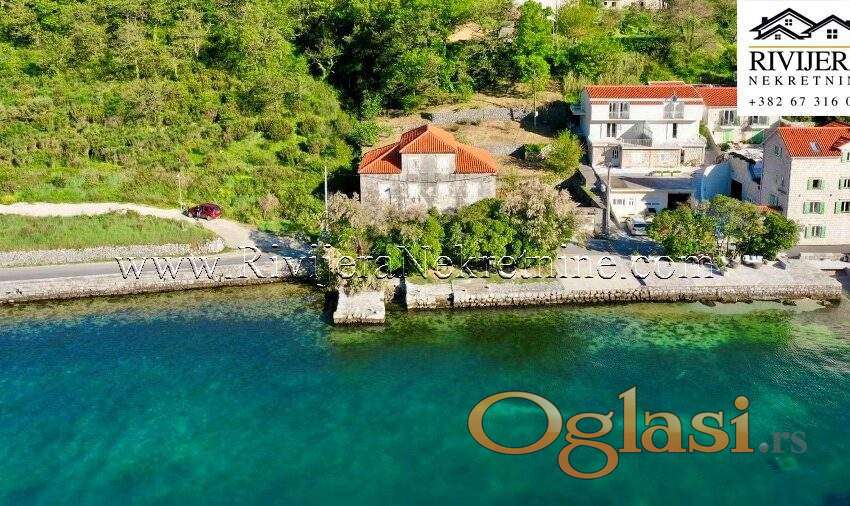 Prodaje se autenticna kamena kuca za renoviranje u prvom redu uz more u naselju Prcanj, opstina Kotor.