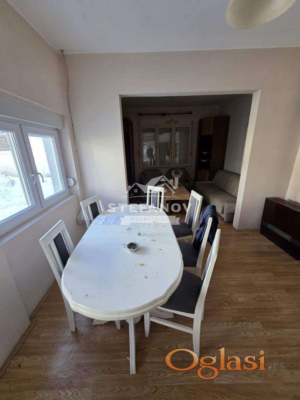 Na prodaju prizemna kuća u Ečki površine 111 m2 na placu od 12.62 ari. Kuca je zidana ciglom, ima visok temelj, predvidjena je za dizanje sprata. Temelj je od armiranog betona. Gradnja je veoma kvalitetna. Krov je pretresan i proveren. Unutra je postavljen laminat preko dobrog parketa po zelji moze da isti da se hobluje i lakira. Na kuci je cela stolarija spolja PVC. Kuca ima uveden gas, struju, vodu. Iza je pomocni objekat koji se sastoji od velike garaze, letnje kuhinje, obora vise, plato, supe za odlaganje ogreva i funkcionalnog tavana. Iza je i velika basta pogodna za sadnju voca i povrca. Uknjižena