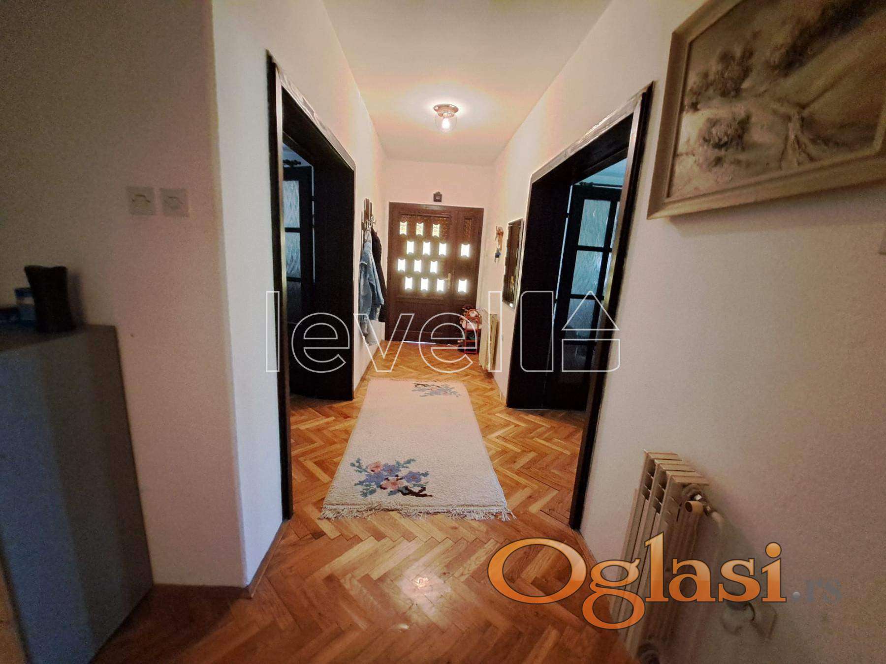 LEVEL PROPERTY, agencija za nekretnine Vam predstavlja odličnu porodičnu kuću na placu od 1509 m2. Nalazi se u mirnoj ulici i lepoj a  od centra udaljena 3 km. Kuća izgrađena krajem 80-tih godina, od kvalitetnih materijala, "sendvič zidovi"( dobra izolacija), drvena stolarija u odličnom stanju.  Ima podrum, gde se nalazi garaža, kotlarnica, ostava, toalet, kuhinja i soba. Stambeni deo je na visokom prizemlju, ima veliku dnevnu sobu sa izlazom na terasu, trpezariju sa kuhinjom, ostava, dve spavaće sobe, kupatilo, toalet i hodnik. Grejanje je centralno na drva ili struju a u dnevnom boravku je kaljeva paeć, što vam omogućava izbor grejanja a stim i uštedu. Plac je pravilnog oblika, širine 21 m i pruža dosta mogućnosti, možete izgraditi pomoćne objekte i bazen a da imate još prostota za vrt ili baštu.