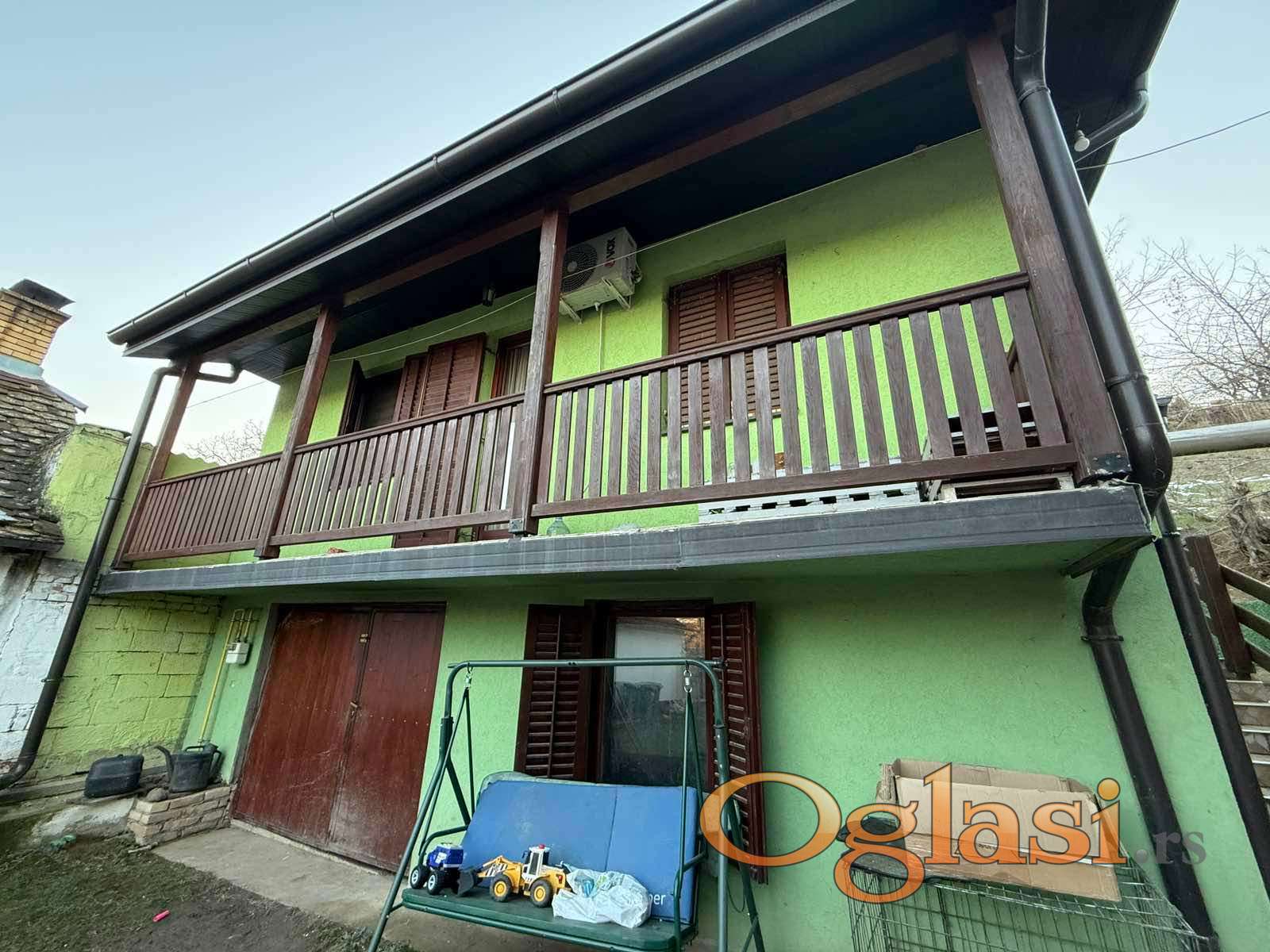 Prva kuća, koja se nalazi do ulice, ima površinu od 128 m². Sastoji se od dve spavaće sobe orijentisane ka ulici, odvojene kuhinje i trpezarije, dnevnog boravka, kao i dodatne sobe sa terasom na spratu. Pored centralnog grejanja na gas, u ovoj kući se nalazi i kaljeva peć, koja dodatno doprinosi toplini i ambijentu.