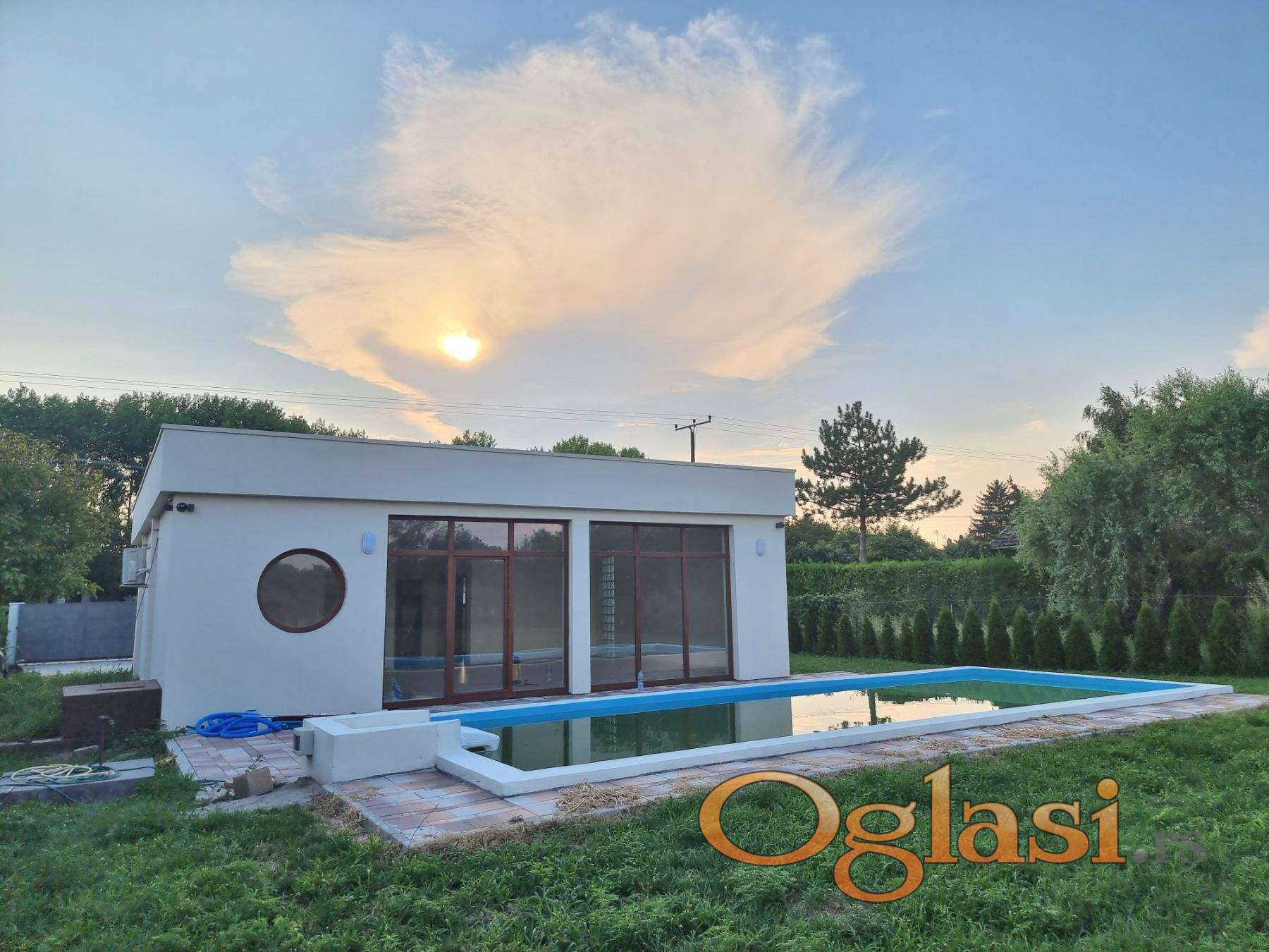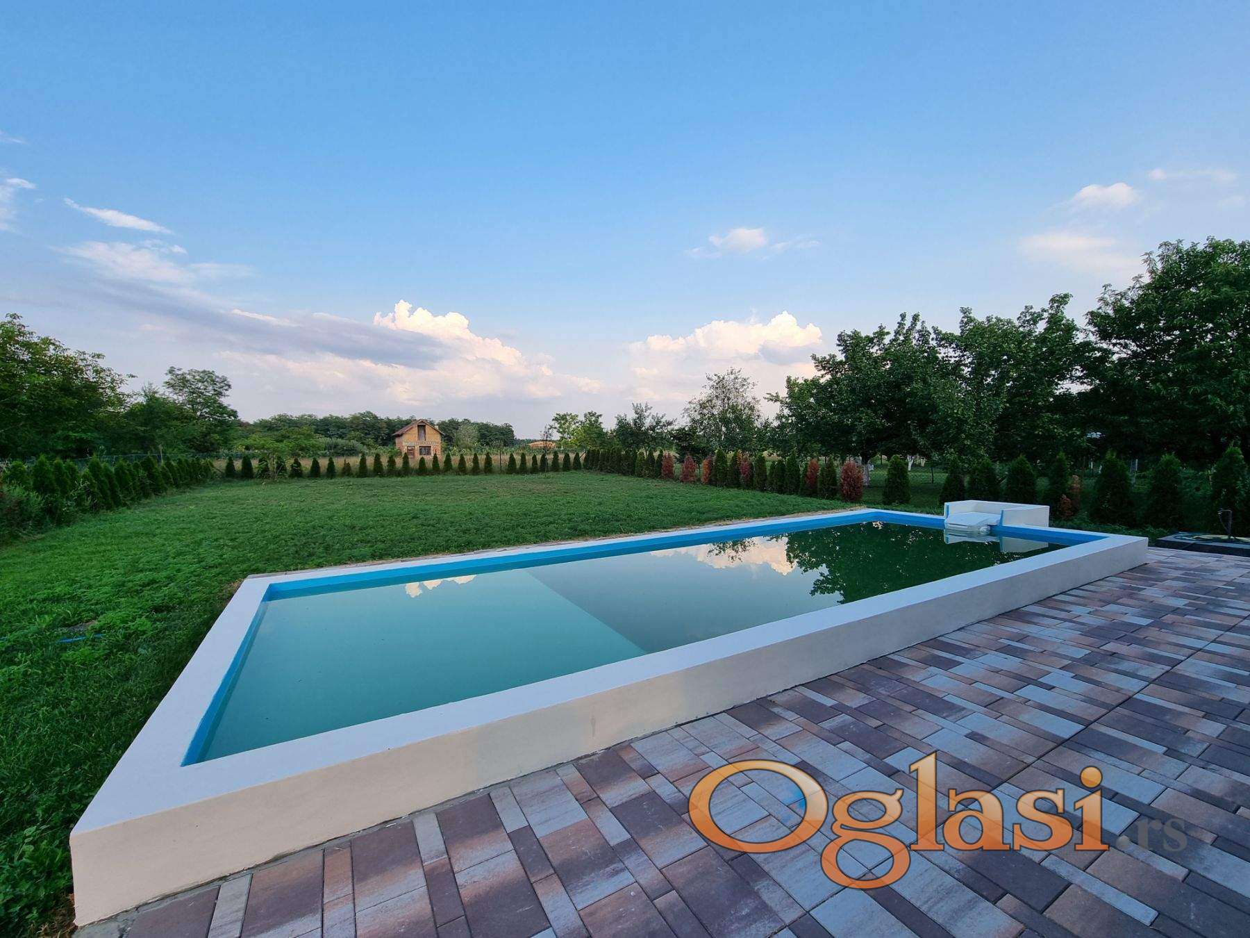 Bazen - površine (dimenzija 9.5 x 3.5 m). Jedan deo bazena je plići - idealan za odmaranje, decu… Poseduje profesionalnu pumpu za filtriranje i mešanje vode.