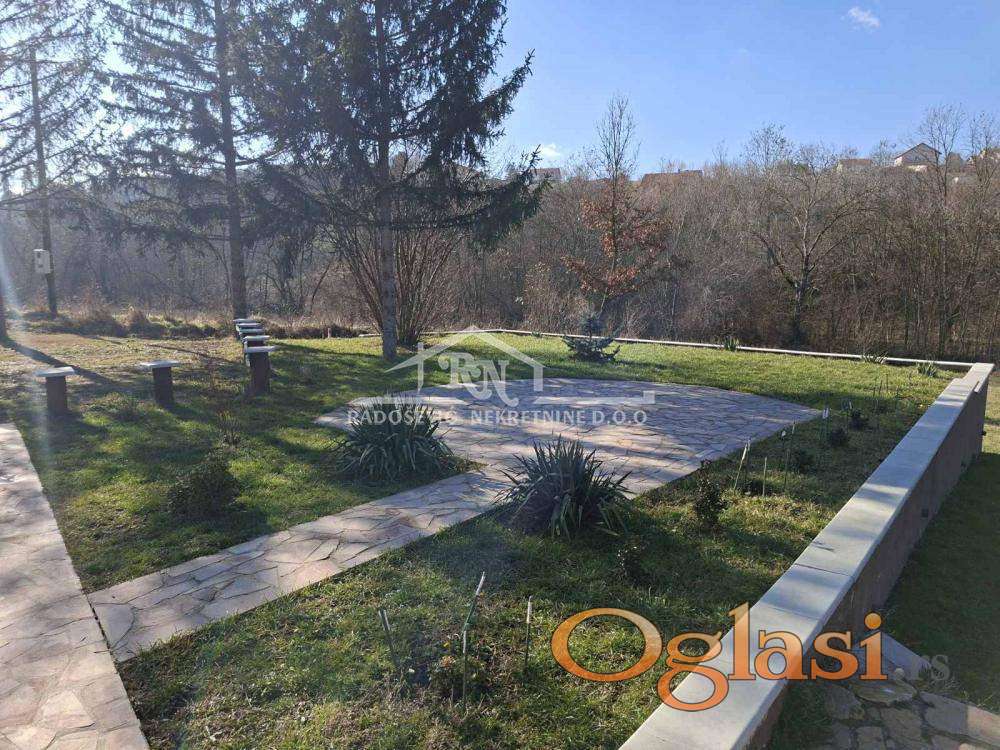 ZEMLJIŠTE: Veliki osvetljeni parking, kamene staze i terasa. Nedavno zasađeno drveće i ukrasno bilje i deo pod šumom. Potpuno spremna za useljenje – ključ u ruke.