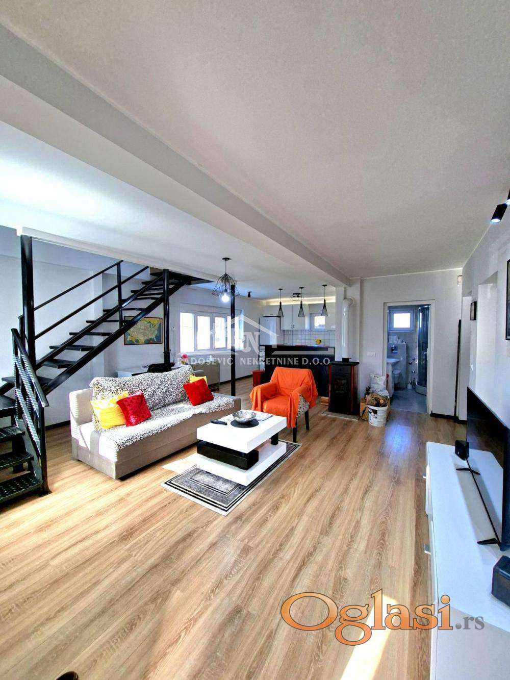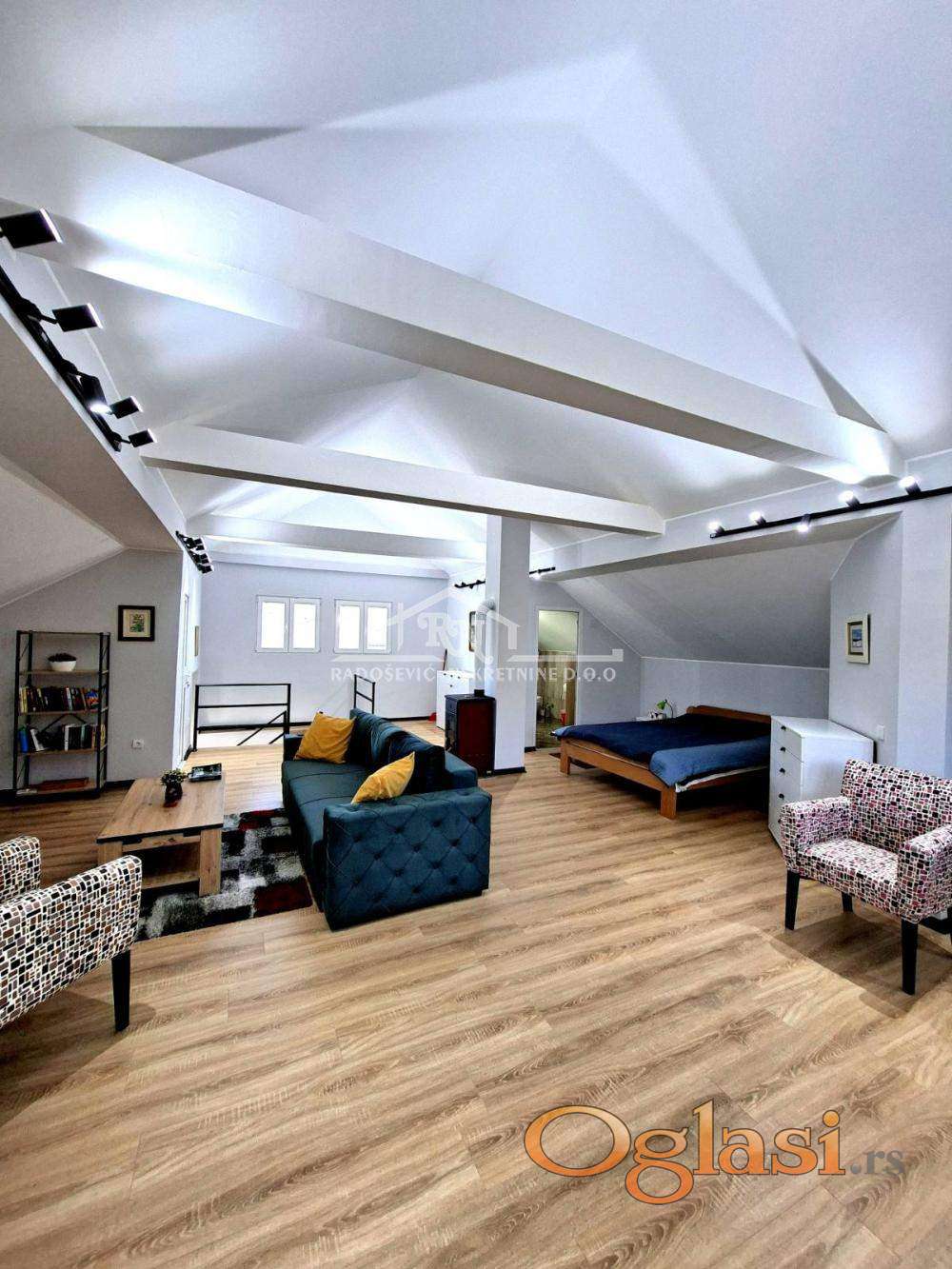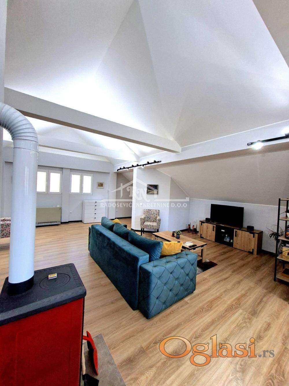 Pre 3 godine kompletno renovirana kuća na dva nivoa (2 × 90 m², ukupno 180 m²) . Nalazi se na placu od 89 ari, sa pripadajućom šumom, u blizini prirodnog izvora vode koji izvire preko 60 godina. Kuća je potpuno opremljena novim nameštajem i kućnim aparatima (frižider, mikrotalasna, šporet, TV, veš mašina, dve klime, toster). Renovirana u konceptu otvorenog prostora, sa modernom i šinskom rasvetom. Kompletno renovirani: krov, hidro i termo izolacija, termopan prozori, fasada, vodovod, elektroinstalacije. Nova fasada, nove vodovodne instalacije, dva bojlera i priključak na gradski vodovod. Dve spoljne česme – prednja na bunarsku vodu, zadnja na gradski vodovod. Nove elektroinstalacije sa podzemnim kablovima do razvodne table. Brz internet, fiksni telefon, alarmni sistem i bezbednosne kamere.