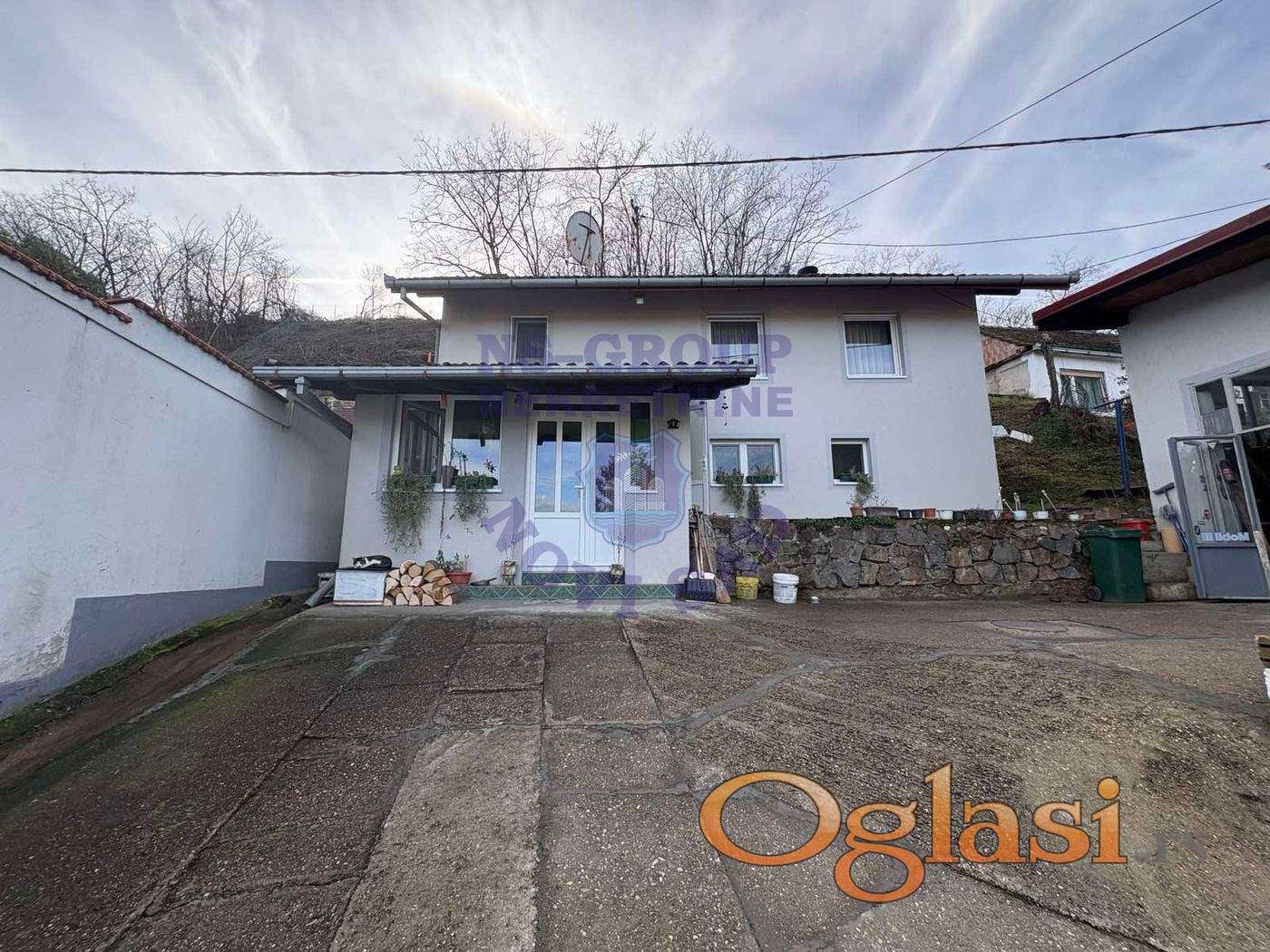 Na prodaju kuća na veoma lepom položaju, idealna za razne poslovne delatnosti. Plac je širok i lep, na samom početku je nadstrešnica za automobile. Kuća je spratna, trosobna po strukturi. U prizemlju je zatvorena terasa iz koje se ulazi u kuhinju sa trpezarijom, zatim dnevni boravak, kupatilo i ulaz u kvalitetno izidani podrum vredan pažnje. Za sprat vode spoljne stepenice, gde su 2 sobe i malo kupatilo. U dvorištu je i radionica-garaža u kojoj je i sav potreban alat za auto servis. Iza kuće je i plac oko 300 m2. Sve je uknjiženo 1/1, bez tereta. Za sve potrebne informacije nas pozovite.... d24