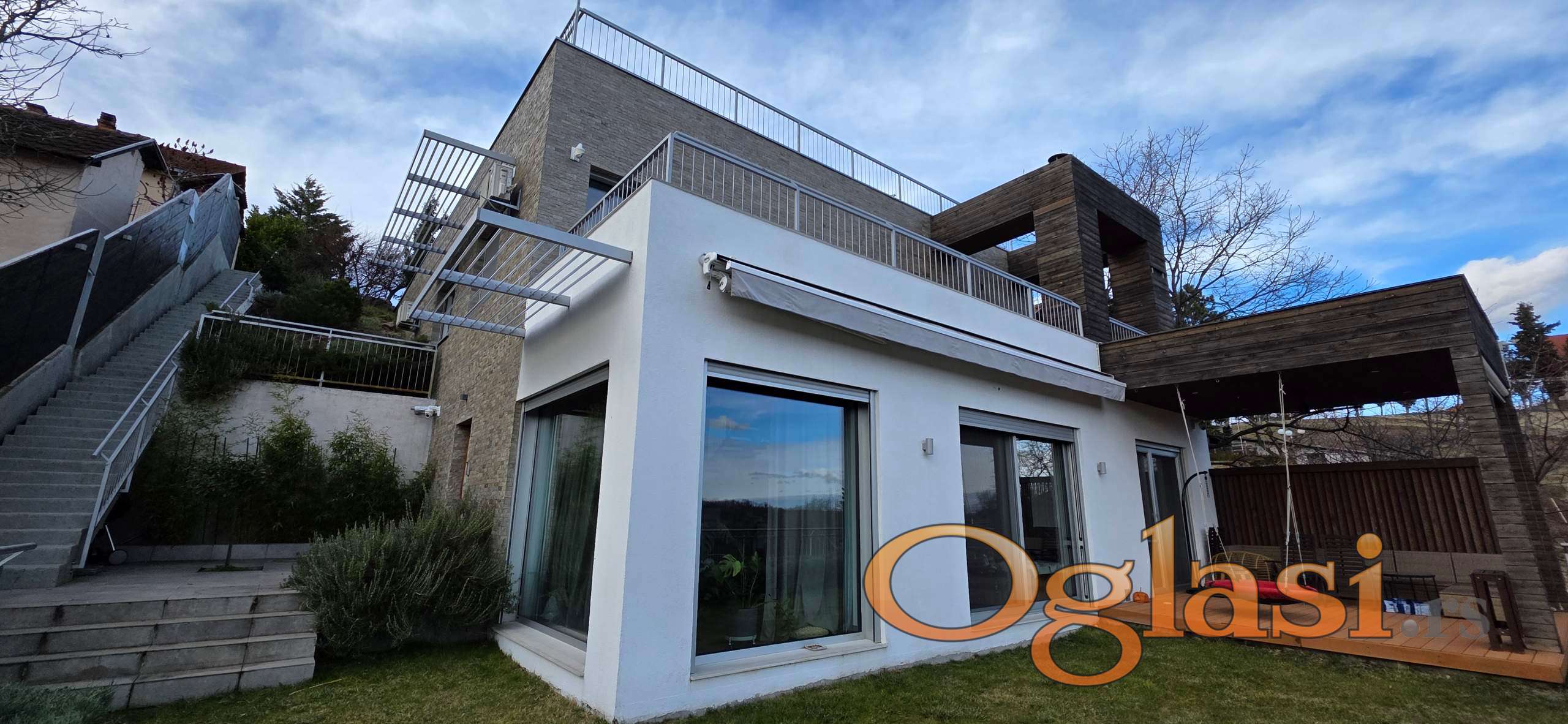 Kuća je nova, građena savremenim materijalima, moderne arhitekture i dizajna sa pokretnim krovom, podnim grejanjem, klimatizacijom, bazenom u dvorištu, plac je 2550m i pruža neverovatan pogled od MILION DOLARA.