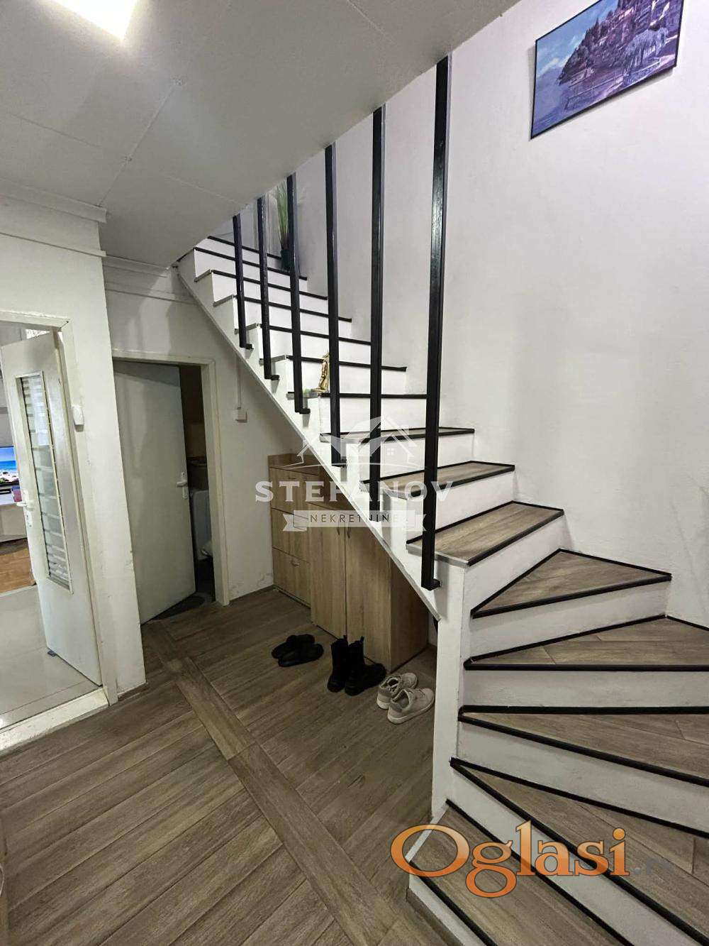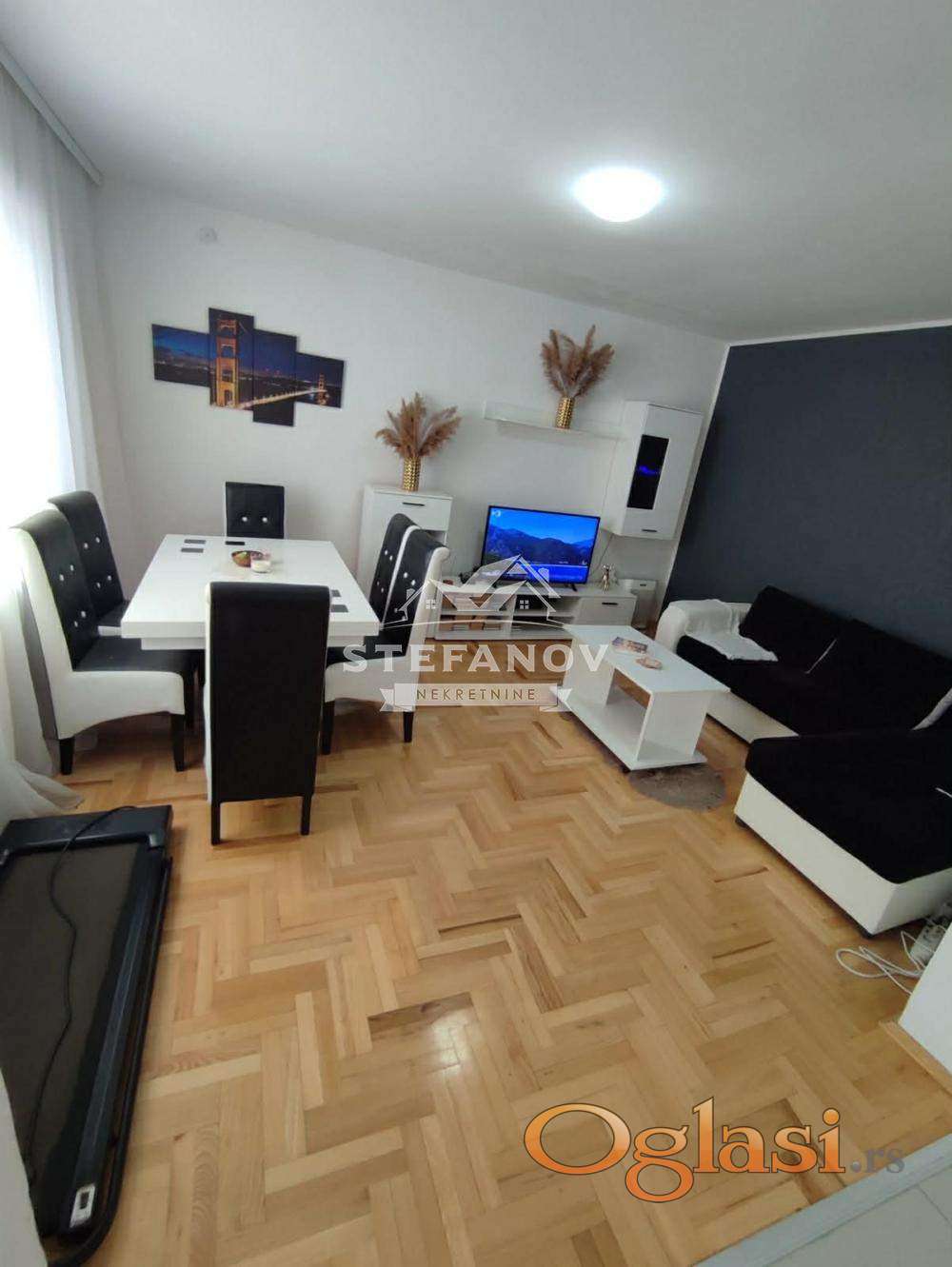 Na prodaju renovirana spratna kuća ukupne površine 162 m2 (108m2 stambeni deo i 54 m2 garaža ispod cele kuće) na parceli od 3.37 ari u naselju Dolja. Prizemlje se sastoji od hodnika, prostranog dnevnog boravka sa kuhinjom i trpezarijom i kupatila. Sprat čine dve spavaće sobe i kupatilo. Grejanje na GAS i dve inverter klime, po podovima postavljen, laminat, parket i keramika. Stolarija drvena, struja trofazna (dva brojila), demit fasada. Dvorište ograđeno, lepo uređeno sa kolskim ulazom i dvosobnim stanom površine 60 m2. Idealna za one koji traže moderan i odmah useljiv dom bez dodatnih ulaganja. U cenu uračunat kompletan nameštaj i bela tehnika. Kuća se nalazi na izuzetno lepoj lokaciji nadomak centra grada, u blizini škole, vrtića, marketa i svih važnih objekata za svakodnevni život. Moguća kupovina putem stambenog kredita.
