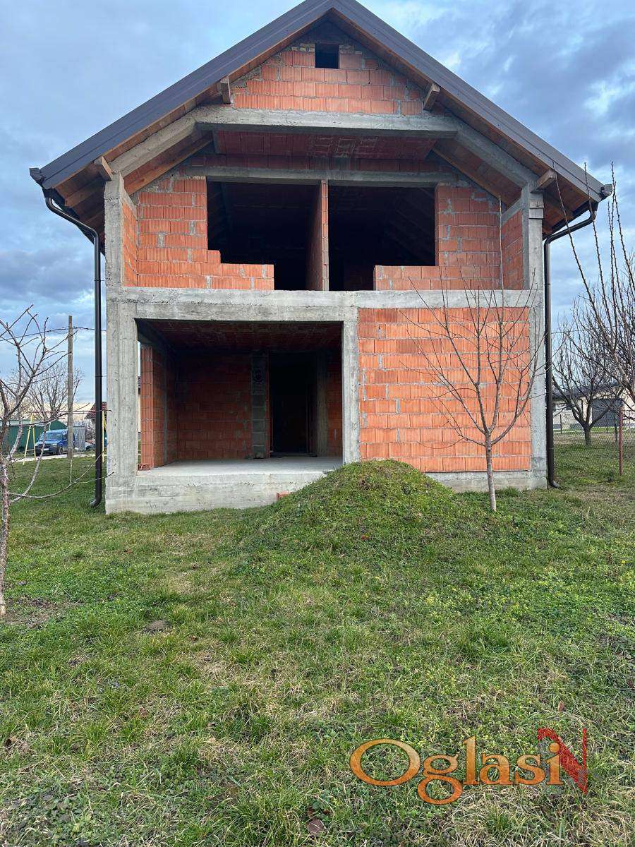 Na prodaju izuzetno funkcionalna kuća u sivoj fazi, građena termo blokom, na poziciji koja nudi mir i prelep otvoren pogled prema Petrovaradinu.