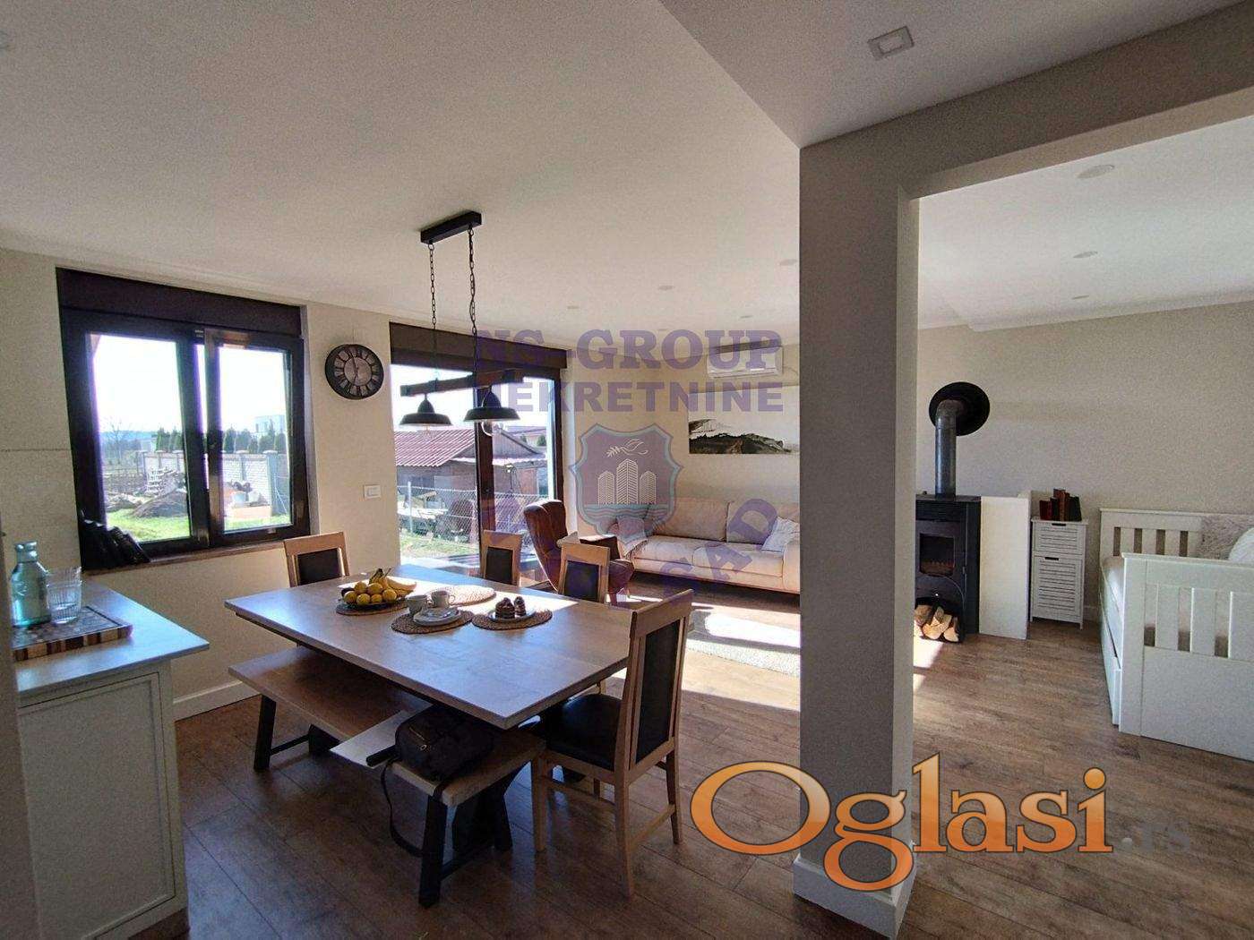 FANTASTIČNA PONUDA! Na svega devet kilometara udaljeno od Novog Sada. Kuća nove gradnje,gradjena izuzetno kvalitetno, ciglom, sa odličnom izolacijom. Nalazi se na prostranom placu od 763m2. Prizemlje je osposobljeno za život, dok je na spratu postavljena stolarija, dovedena je struja i voda, predvidjene su tri sobe i dva kupatila, ali budući kupac moze organozovati po svojoj želji. U prizemlju se nalazi prostrani dnevni boravak prelepo osvetljen, velika kuhinja koja je povezana sa dnevnim boravkom, wc za goste, vešeraj i komforna master soba sa svojim kupatilom. Ne propustite kupovinu ove kvalitetne kuće 064 8 222 154