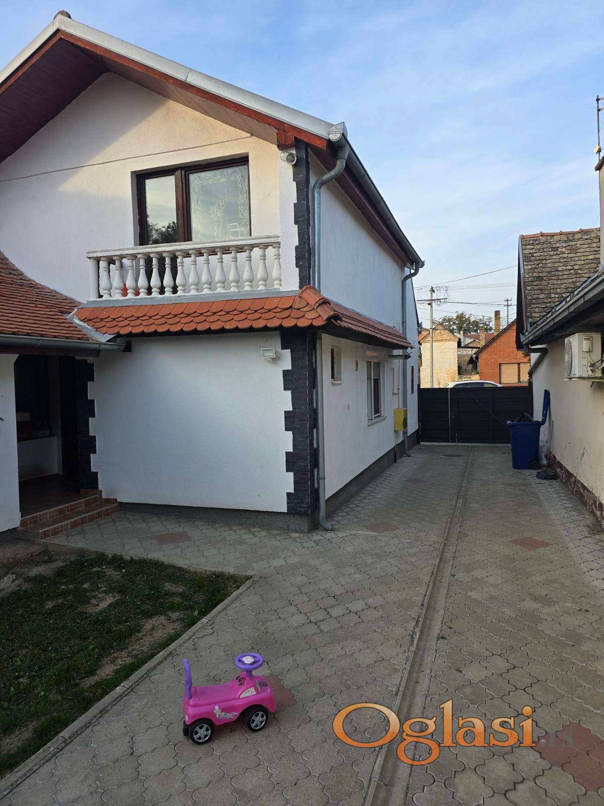 Prodaje se kuca,u dobrom stanju,bez ulaganja,sve sredjeno,utadjena fasada,centralno grejanje,pvc stolarija,u dvoristu behaton,cuprija u stampanom betonu za tri vozila. Poseduje veci broj dodatnih prostorija van stambenog prostora,garaza preko 100kvadrata,podrum takodje.
