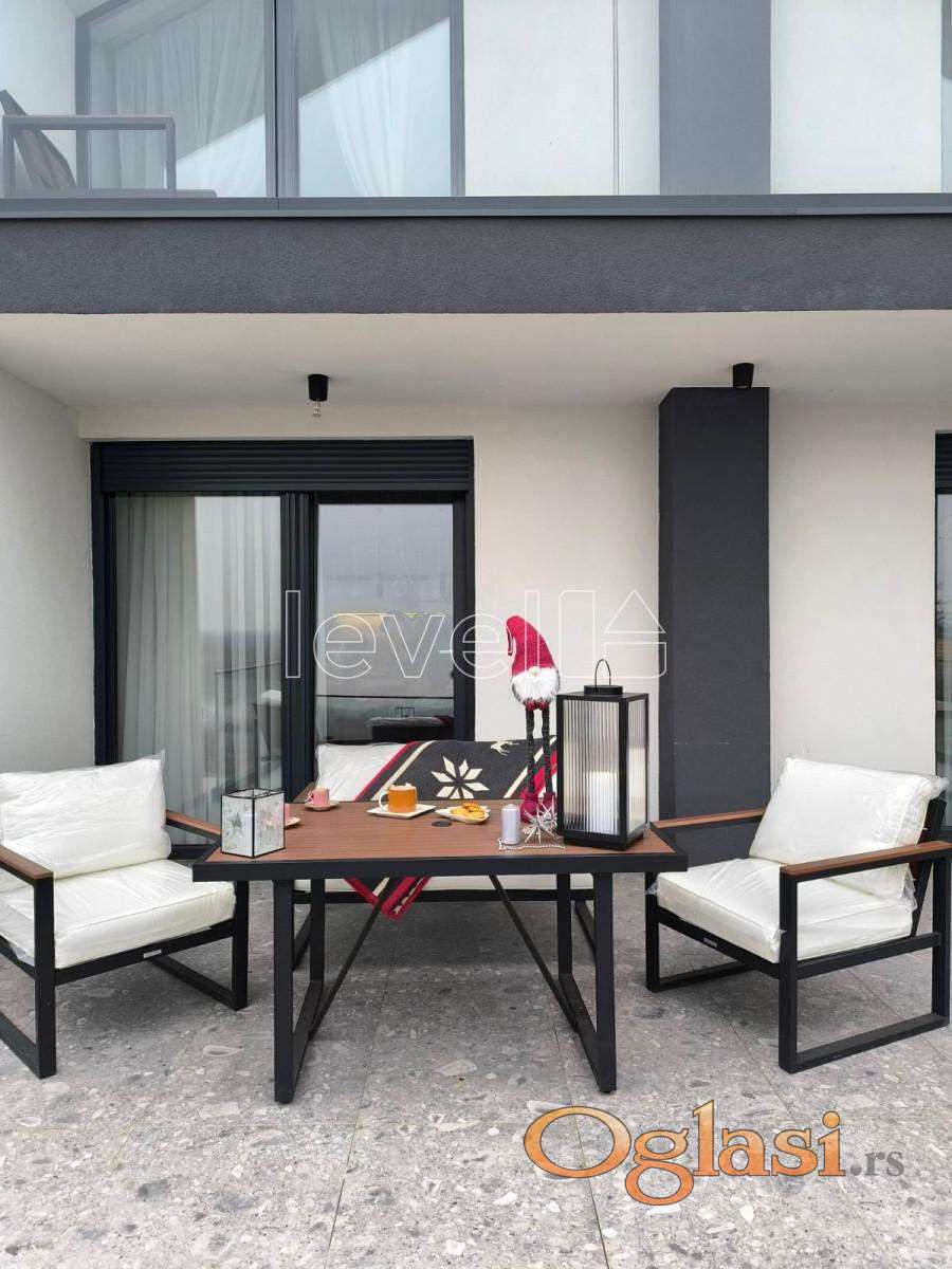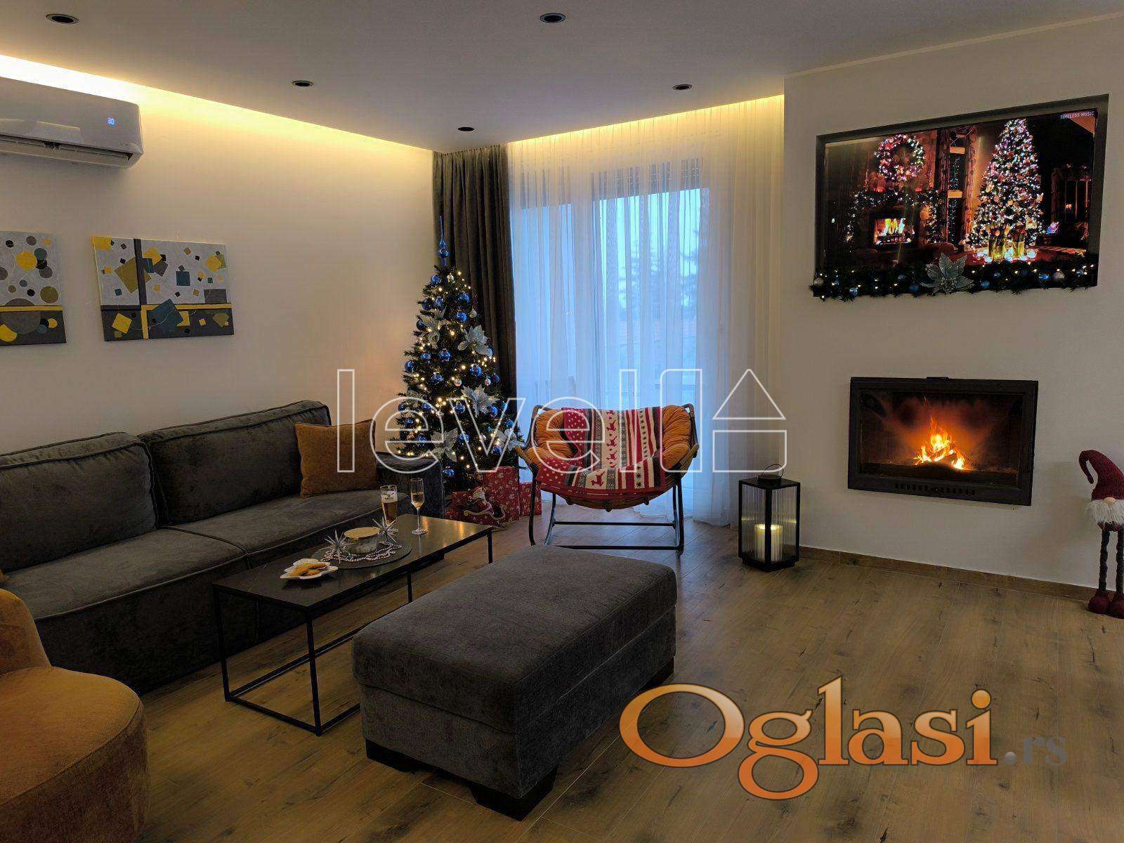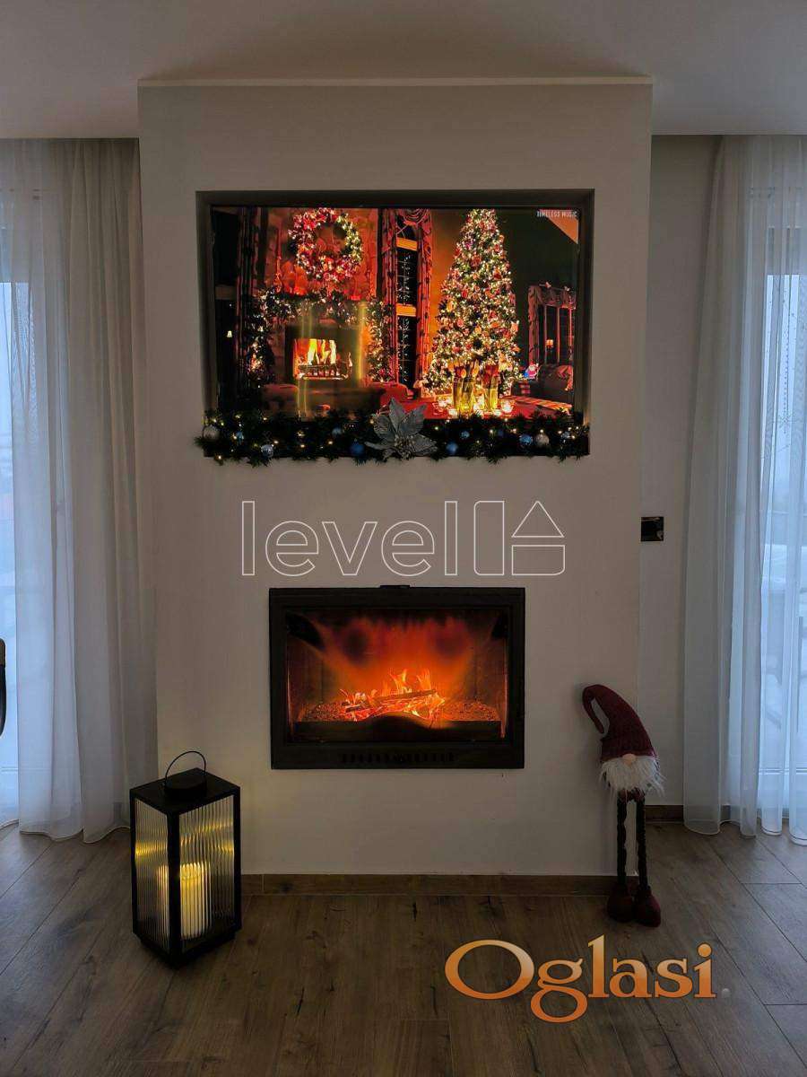 • Prostrani dnevni boravak sa obiljem prirodne svetlosti i izlazom na prelepu terasu sa pogledom na reku, u dnevnom boravku ugradni kamin koji se savršeno uklapa u samu prostoriju i daje joj posebnu toplinu.