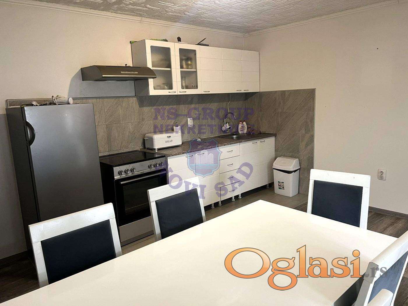 Na prodaju renovirana i kompletno nameštena kuća. Sastoji se od tri komforne sobe, funkcionalnog hodnika, zastakljene terase, ostave i kupatila. U dvorištu se nalaze šupe, pomoćne prostorije, garaža i radionica - idealno za dodatno skladištenje, kao i pokretanje dodatnog posla. Urađena je hidroizolacija, uveden gas, a kuća se prodaje sa nameštajem i tehnikom, što budućim vlasnicima omogućava bezbrižno i brzo useljenje. Odličan izbor za porodično stanovanje, mir i udobnost. 021/425-112, 064/8222147, 061/6608824