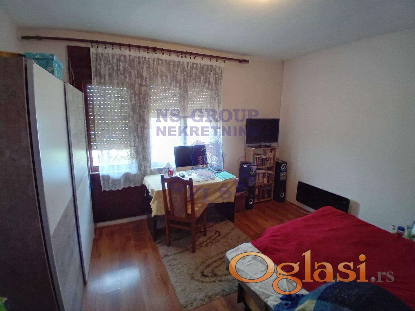 Na prodaju odlična spratna kuća u jednom od najlepših delova Rume. Lokacija odlična - porodično naselje u blizini svih bitnih sadržaja (škole, vrtić, prodavnice, igralište, restorani, frizeri - sve na dohvat ruke, odlična povezanost sa centrom grada). Kuća je spratna, čvrsta gradnja, zahteva određena ulaganja. Drvena stolarija, na podovima kombinacija laminata i etisona. U samom podrumu velika garaža/radionica sa ostavom. U prizemlju dve spavaće sobe, ogroman dnevni boravak sa kuhinjom i trpezarijom koji se moze pregraditi i odvojiti po želji kupca, kupatilo i hodnik. Sprat identičnog rasporeda, u sivom stanju. Iznad se nalazi tavan. Ima ukupno tri terase. Dvorište dovoljno veliko puno zelenila, dosta prostora za parkiranje.