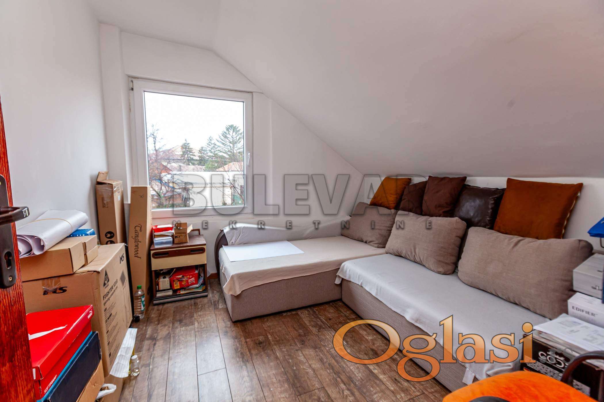 Na prodaju kvalitetna kuća na odličnoj lokaciji na Panteleju u Jagodin mali, u neposrednoj blizini škole, vrtića i autobuskog stajališta. Kuća je strukture Pr+P1+Pk, ukupne građevinske površine 236m2, na zajedničkom placu od 208m2. Na visokom prizemlju i prvom spratu su dva četvorosobna stana 73m2 i 71m2, sa hodnikom, dnevnom sobom, kuhinjom i trpezarijom, tri spavaće sobe i kupatila. U potkrovlju je jednoiposobni stan od 49m2, dnevna soba sa kuhinjom i trpezarijom, jedna spavaća soba, kupatilo I ostava. Grejanje u kući je etažno, na prizemlju kotlom na čvrsto gorivo, na spratu inverter klimom, stolarija kombinovana, spoljna PVC, unutrašnja drvena, na podovima laminat. Minimalna ulaganja u komforan, svetao i očuvan stambeni prostor. Spoljašnja Demit fasada. Prodaje se sa nameštajem. Postoji mogućnost priključka na gas. Objekat je ozakonjen, etažiran, privatna svojina jednog lica, moguća kupovina stambenim kreditom. Za više informacija, slika ili zakazivanje posete, pozovite agenciju.