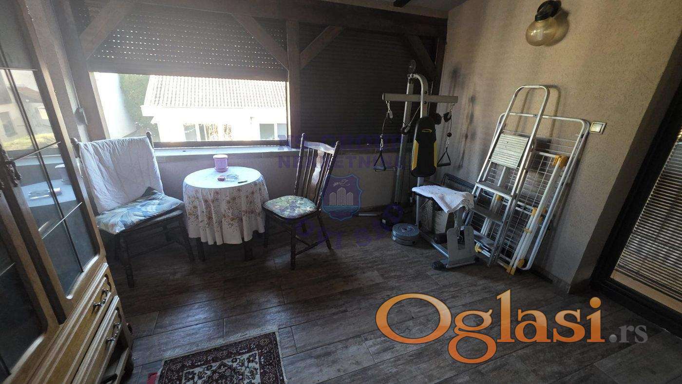Na prodaju kuća na Avijatičarskom naselju u lepoj mirnoj ulici. Plac veličine 319m2 . Kuća je spratna . Korisne površine 218m2. U donjem delu se nalazi velika dnevna soba sa izlaskom na prelepu natkrivenu terasu, komfornu spavaću sobu, odvojenu kuhinju sa prirodnom ventilacijom,kupatilo sa tuš koabinom,garažu sa ostavom. Na spratu se nalaze 4 komforne spavaće sobe , dve terase(jedna zatvorena), kupatilo sa ležećom kadom i tavanski prostor.. Kuća je renovirana -- zamenjena instalacija struje i vode,alu stolarija sa roletnama i komarnicima. Kompletno promenjen krov izolovan tavanski prostor. Uradjena fasada. Kuća se prodaje nameštena. Nekretnina za svaku preporuku. Za više informacija pozovite agenta prodaje.