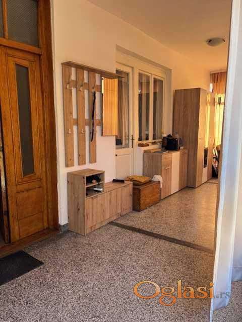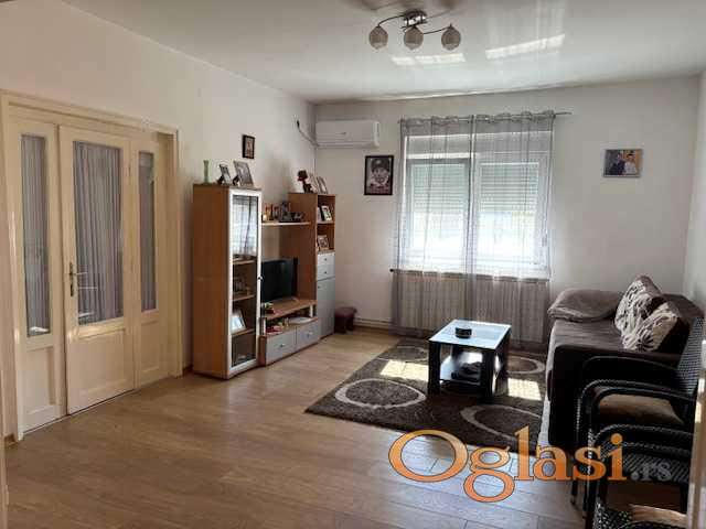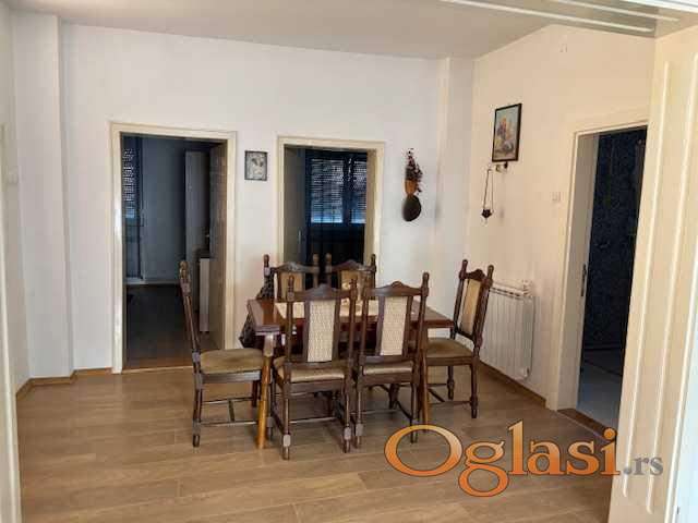 Na prodaju renovirana prizemna kuća u inđiji. Bez ulaganja, komplet nameštena. Smeštena u mirnom delu grada, idealna za porodični život. Plac površine 372m2, pravilnog oblika, ograđen je. Kuća površine 103m2, dve spavaće sobe, kuhinja, ostava, kupatilo, dnevna soba i trpezarija. Na samom ulazu ima velika veranda koja je zatvorena staklom, ali postoji mogućnost da se adaptira i prostorija. Kuća je renovirana. Pvc stolarija, centralno grejanje, sanitarna voda, laminat, klima, gradska kanalizacija. Rađene su nove vodovodne instalacije. Od pomoćnih objekata garaža i letnja kuhinja, površine 64,14m2. Letnja kuhinja je takođe opremljena. U sklopu letnje kuhinje ima wc i prostorija koja je predviđena za održavanje slavlja. Svi papiri su čisti. vlasnik 1/1.