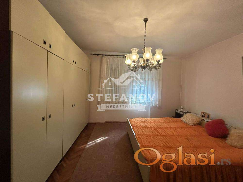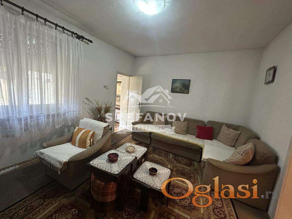 Na prodaju prizemna kuća površine 108 m2 na placu od 5.99 ari na odličnoj lokaciji u naselju Bagljaš. Kuća građena od čvbrstog materijala (cigla ipo, kameni temelj) sastoji se od zastakljene terase, hodnika, dnevnog boravka, trpezarije, odvojene i ostave, dve spavaće sobe, i kupatila. Struja trofazna, grejanje na GAS, po podovima parket i keramika, stolarija drvena sa roletnama. Gradska kanalizacija. Poseduje kolski ulaz, Lokacija izuzetna, u blizini svih važnih sadržaja kao što su škole, vrtić, ambulanta, pijaca, autobuskog stajališta, TC BIg, pošze, mesne zajednice...Idealna za život uz minimalno ulaganja, pruža odličnu osnovu za renoviranje ili daptaciju po sopstvenim željama. Plac nudi dovoljno prostrora za dvorište koje je ograđeno, prostrano, i ćini ga garaža, letnja kuhinja, i šupa. Odlična prilika za porodičan život ili kao investiciju na jednoj od traženijih lokacija u gradu. I zona, gradsko građevinsko zemljište. Moguča kupovina putem stambenog kredita. Cena nije fiksna.