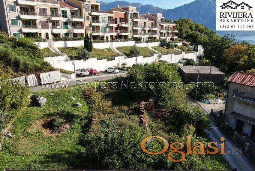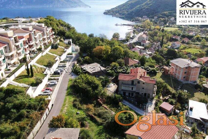 Urbanizovano zemljiste Morinj Kotor. Povrsina parcele 674 m2, mogucnost gradnje objekta od 674 m2 (bruto povrsine), tri nadzemne etaze. Udaljenost od mora oko 300 metara.