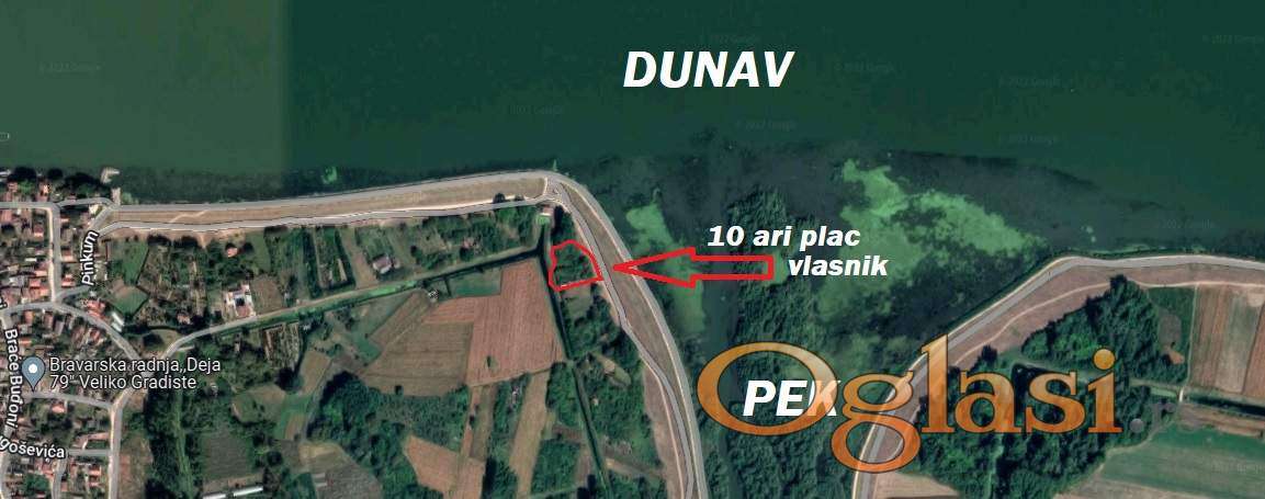 Plac je u vlasnistvu 1/1 ma idealnoj lokaciji usca reke Pek u Dunav a sa zadnje strane sa kanalom . Velicina placa je 10 ari . Plac na tri reke - usce reke Pek u Dunav