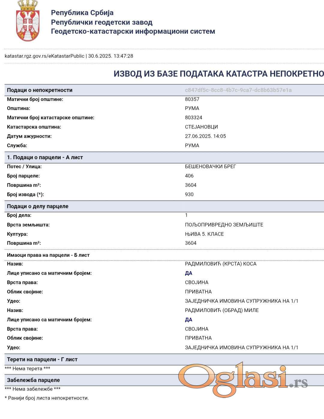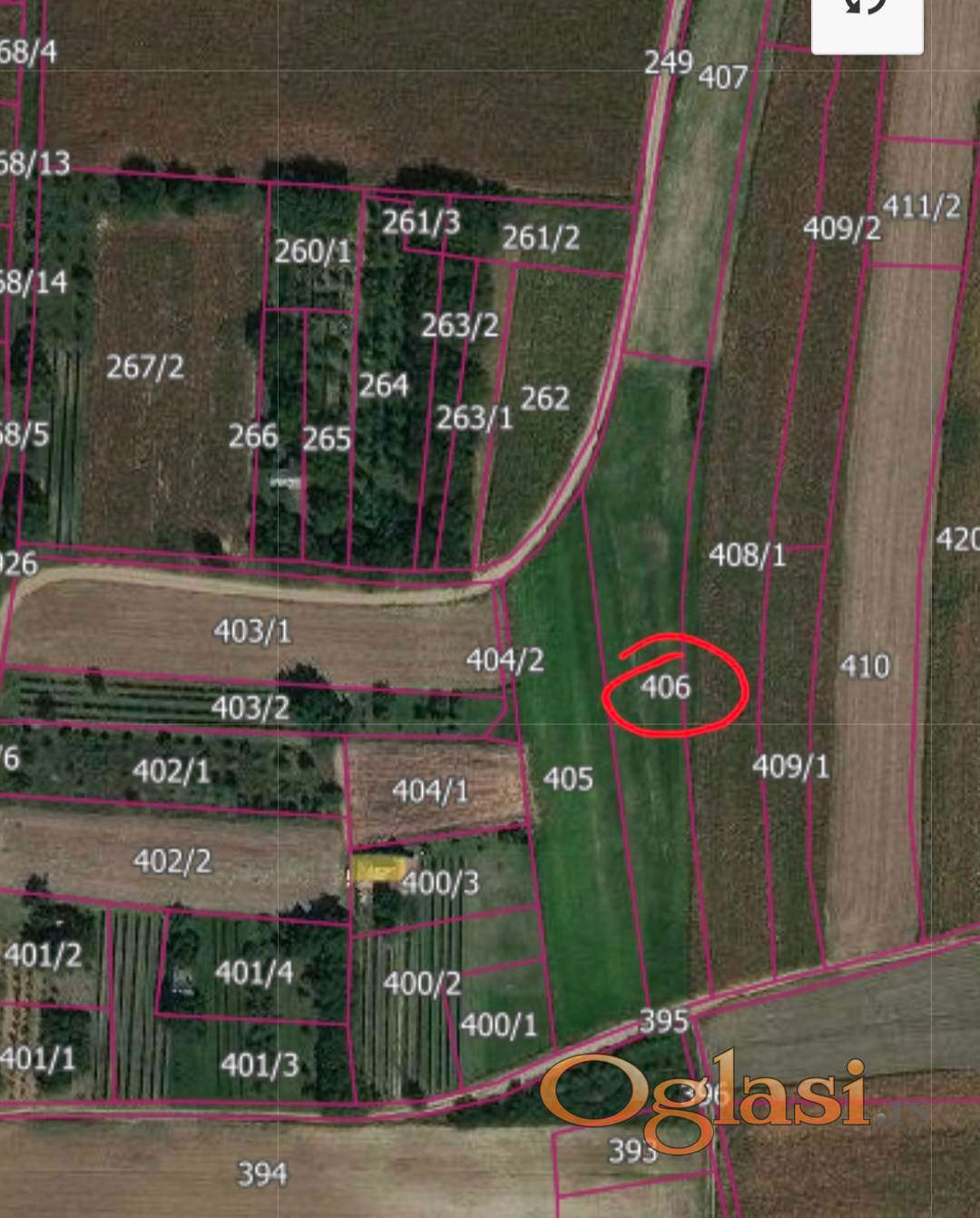 Trenutno se prodaje samo parcela 406, dok je vlasnik parcele 405 otvoren za razgovor o potencijalnoj prodaji svog dela, ukoliko kupac bude zainteresovan za celu površinu.
